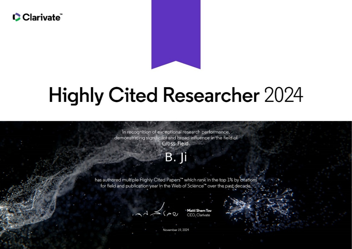 季斌教授入选科睿唯安(Clarivate)2024年度“全球高被引科学家”(Highly Cited Researchers)榜单