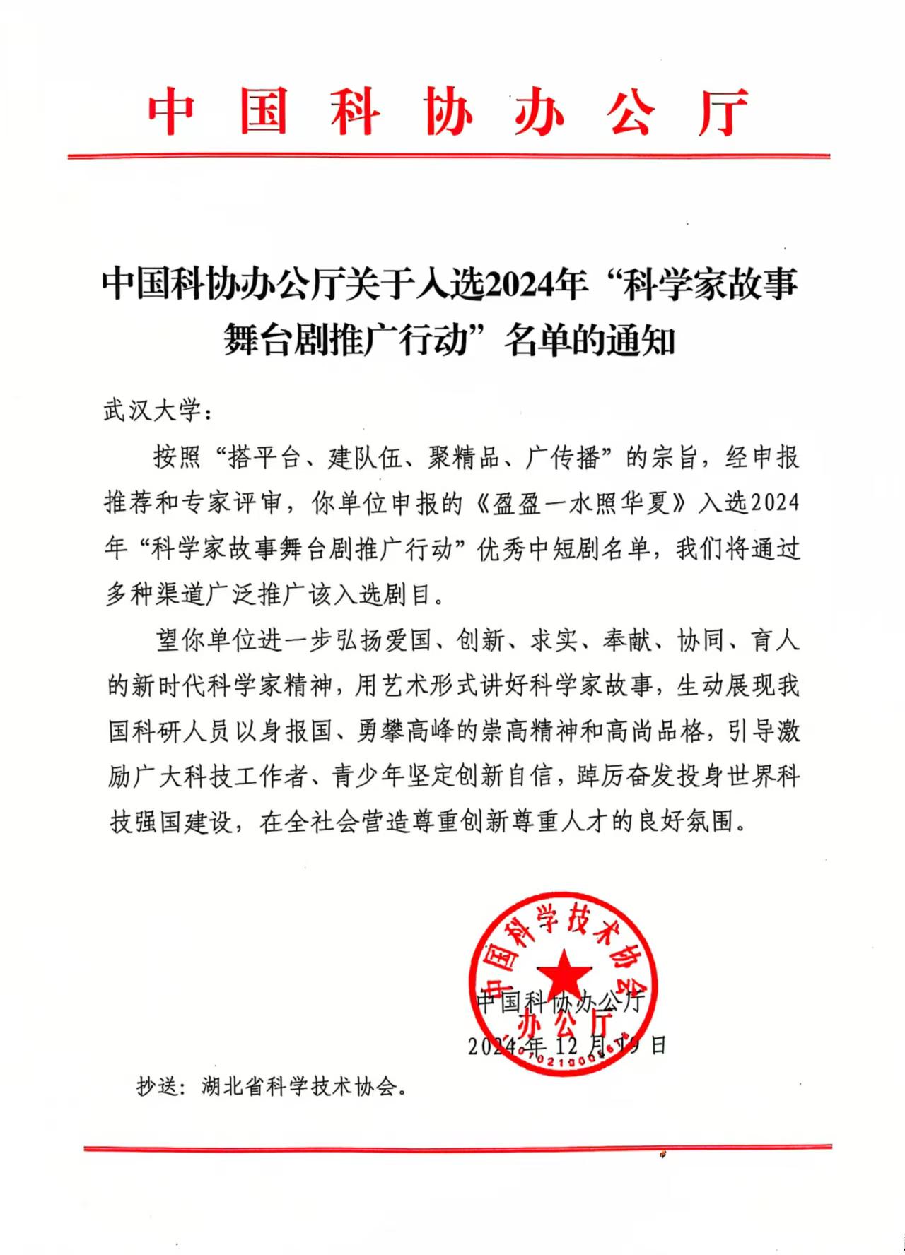 【武大主页】我校原创舞台剧入选中国科协科学家故事舞台剧推广名单