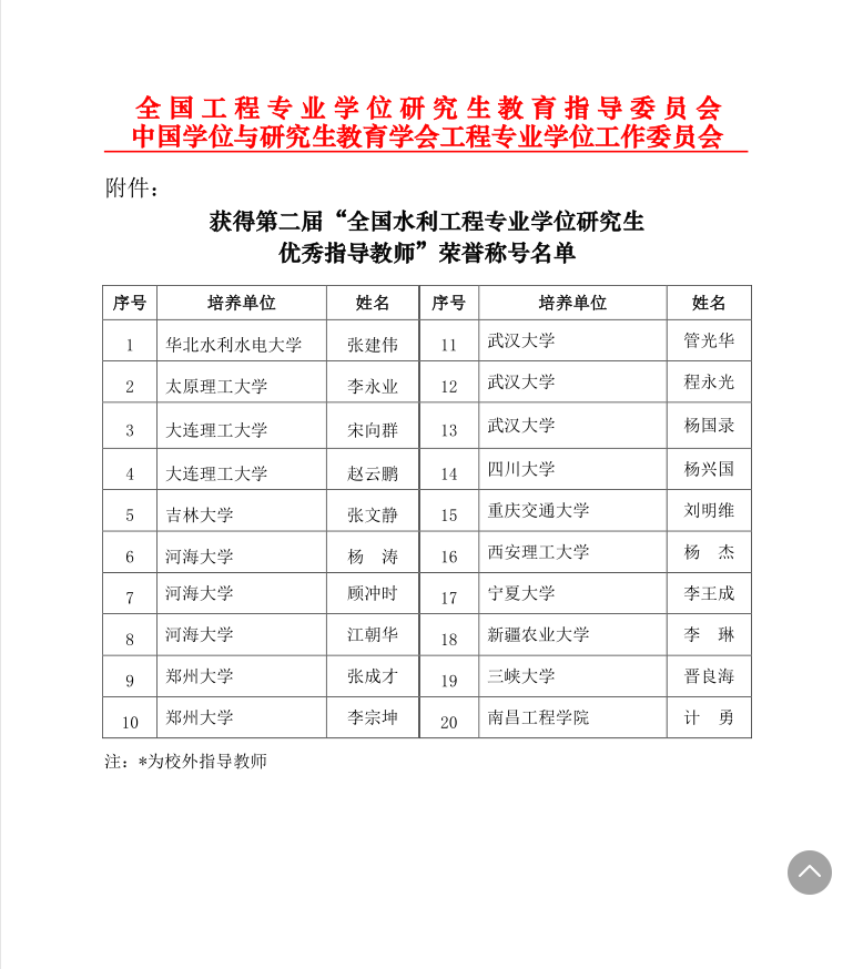 我院师生在全国水利工程专业学位研究生教育先进评选中再获佳绩