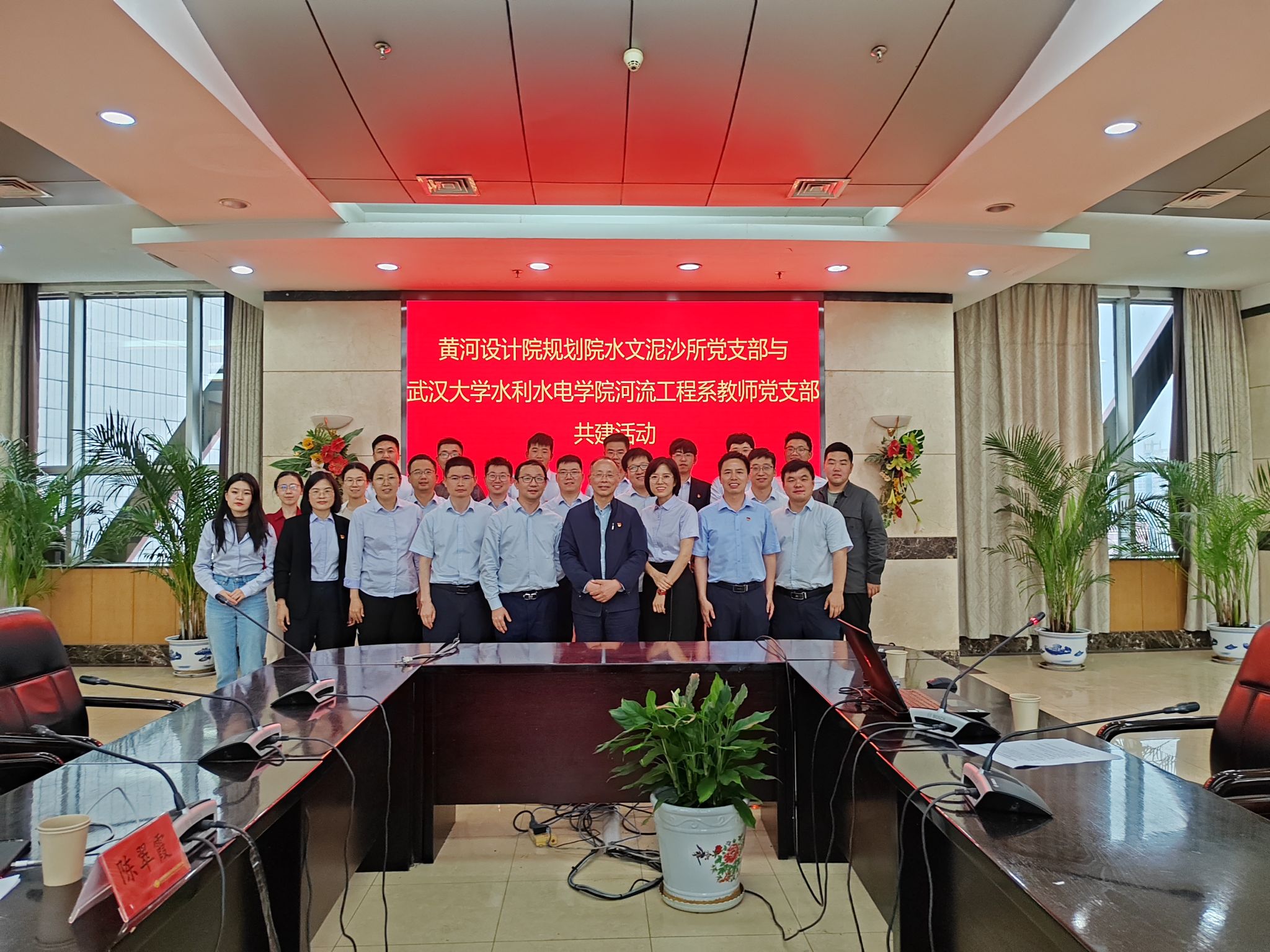 为深入开展学习贯彻习近平新时代中国特色社会主义思想主题教育,贯彻落实党的二十大精神,推进党支部共建共创活动,6月2日,学院河流工程系教师党支部前往黄河勘测规划设计研究(以下简称黄河设计院)水文泥沙所党支部,开展“校企互动,双融双促”主题教育党日共建活动。河流工程系党支部书记李志威及党员代表、黄河设计院水文泥沙所党支部成员共计30余人参加本次活动,活动由黄河设计院规划院副院长、党支部书记鲁俊主持。