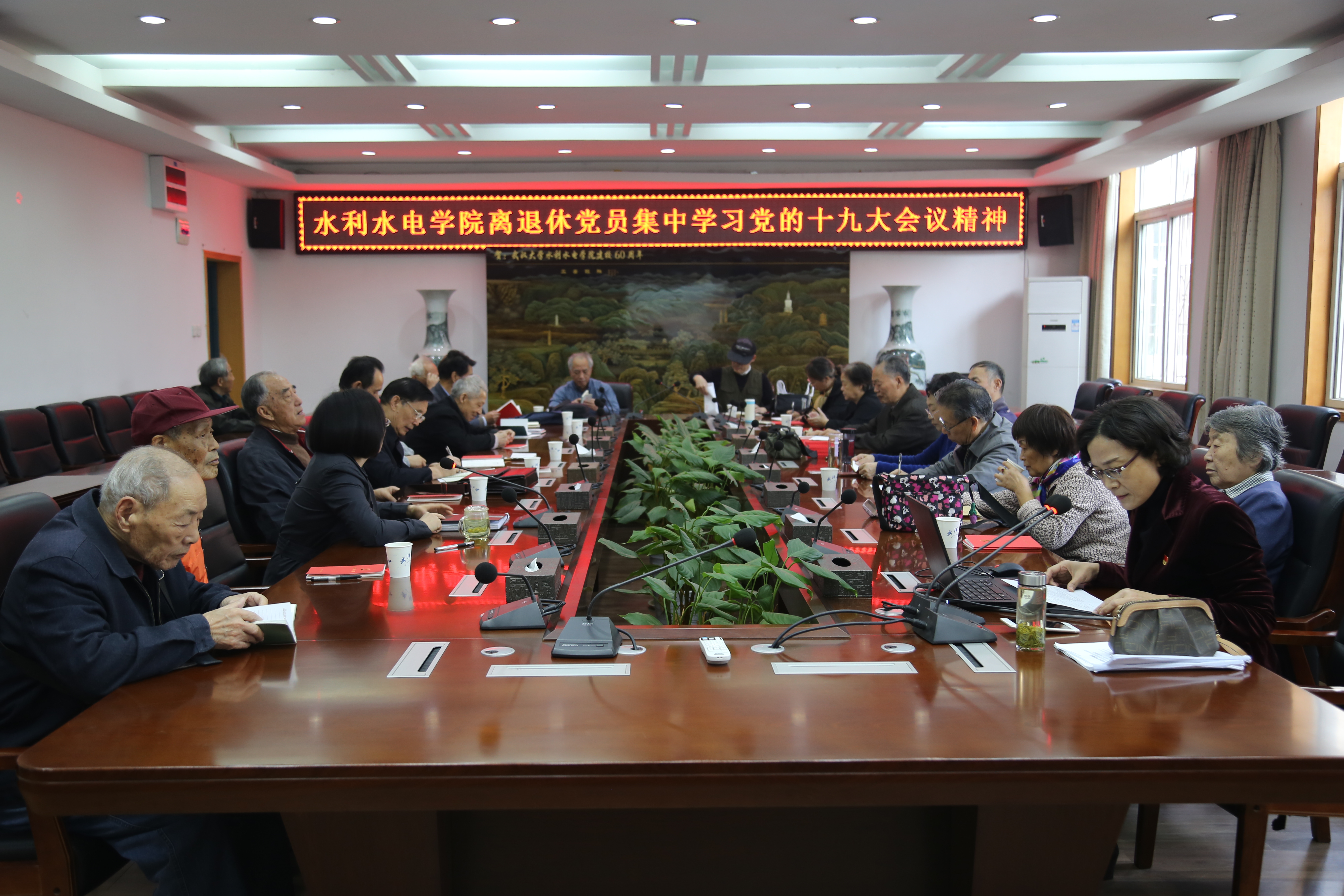 离退休党员集中学习了党的十九大会议精神,会议由学院党委副书记周玉霞主持,党委书记程连珍做了专题报告,学院各离退休支部书记、支委党员代表共二十余人参加了学习。