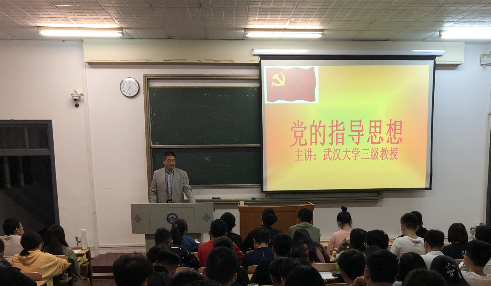 马克思主义学院王新山教授为本期入党积极分子培训班作了第一场授课——党的指导思想。王教授以“为什么加入中国共产党”为切入点,调动了同学们的学习热情,结合水利学科特色,从历史及核心思想内涵上向同学们诠释了马克思列宁主义、毛泽东思想、邓小平理论、“三个代表”重要思想、科学发展观、习近平新时代中国特色社会主义思想等党的指导思想,举例形象,语言生动,教室内赞叹声不断。同时,王教授强调作为入党积极分子要加强理论修养,不断端正入党动机,坚定地树立起为共产主义事业奋斗终生的崇高理想和信念,使同学们受益匪浅。