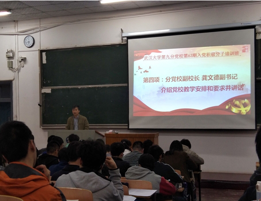 随后,分党校副校长龚文德副书记讲话。龚书记代表学院党委对115名新学员表示了祝贺,并向同学们介绍了分党校的课程安排情况,对各位学员的学习纪律、学习任务等做了详细说明。特别值得一提的是,本期入党积极分子培训班将“学习强国”App的学习纳入日常管理考核体系,要求同学们在党校培训期间每人每天至少完成20积分的学习,最后将根据同学们的总积分排名,在党校结业典礼上为积分前十名的同学颁发“学习之星”荣誉证书。同时,龚书记还从珍惜机会,努力学习;坚定理想,端正动机;知行合一,积极作为三个方面对学员们提出了期望和要求。希望同学们积极进取,争取在党校的学习过程中全面发展自己,不仅做到学业上的优秀,更做到思想上的先进,争取早日加入党组织。