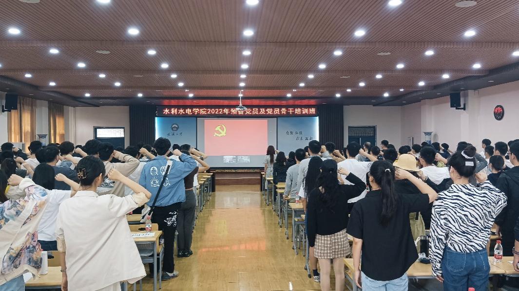 (图为开班仪式场景,同学们在党旗下宣誓)