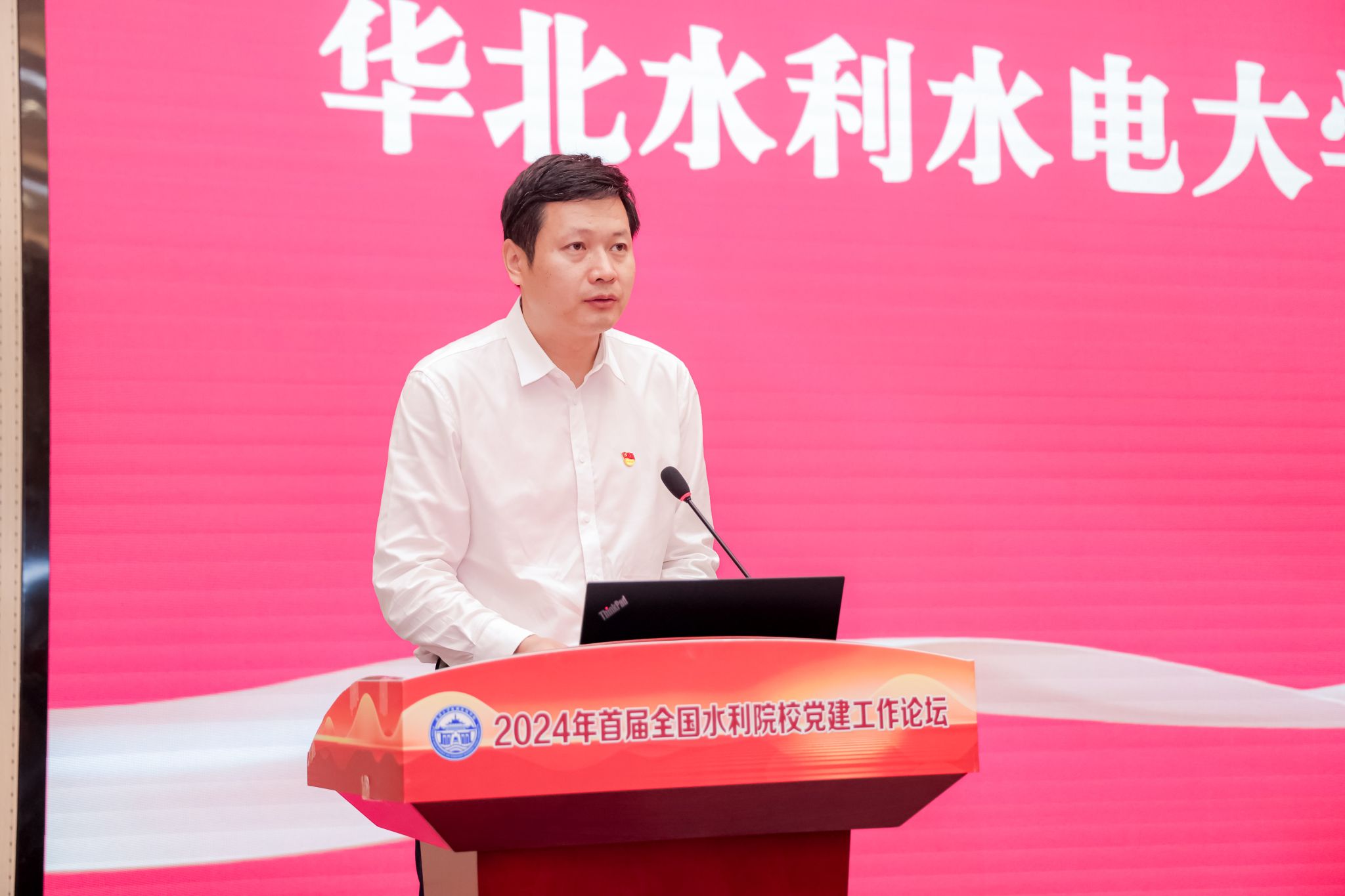 参加中国南北极科学考察队的师生代表回信,极大的鼓舞了学校全体师生。近年来,学校党委坚持以习近平新时代中国特色社会主义思想为指导,坚守为党育人、为国育才初心使命,紧紧围绕“双一流”建设目标,以国家战略为指引,以立德树人为根本,以学科建设为龙头,以队伍建设为核心,守正创新、锐意进取,综合实力和核心竞争力不断提升,各项事业呈现蓬勃发展的良好态势。他表示,希望通过此次论坛推动党建与业务深度融合,共谋水利高等教育事业发展新思路。王笃波在致辞中表示,近年来华北水利水电大学党委坚持以党建“第一责任”引领和保障发展“第一要务”,实施“铸魂育人工程”“强基固本工程”“头雁引领工程”“支部建设标准化工程”和“同心圆梦工程”等六大工程,推动党建工作与业务工作深度融合。陆国宾提到河海大学始终坚持党对学校工作的全面领导,高效落实党委领导下的校长负责制,积极探索党建与业务相融互促的模式和路径,为学校高质量发展提供坚强引领保障。清华大学土木水利学院党委书记傅旭东表示,学院坚持把党建工作贯穿于学院各项事业发展的全过程,希望通过此次论坛共同探讨水利高校党建工作的新思路、新举措。