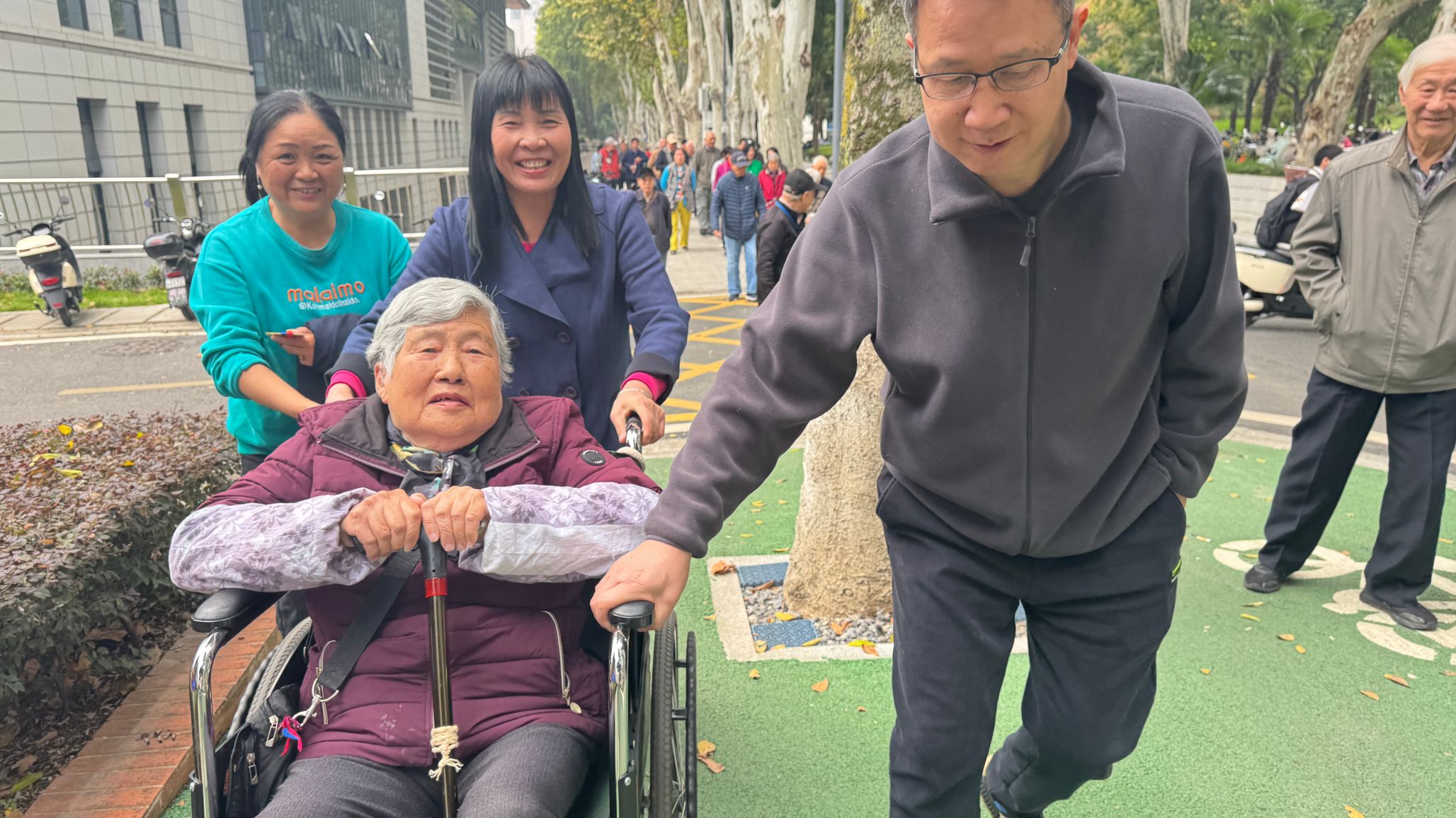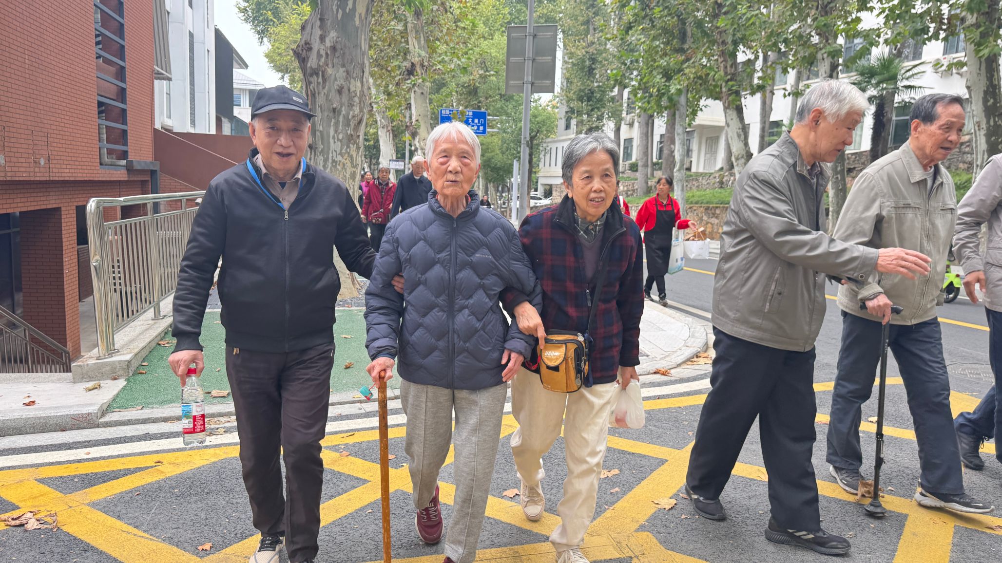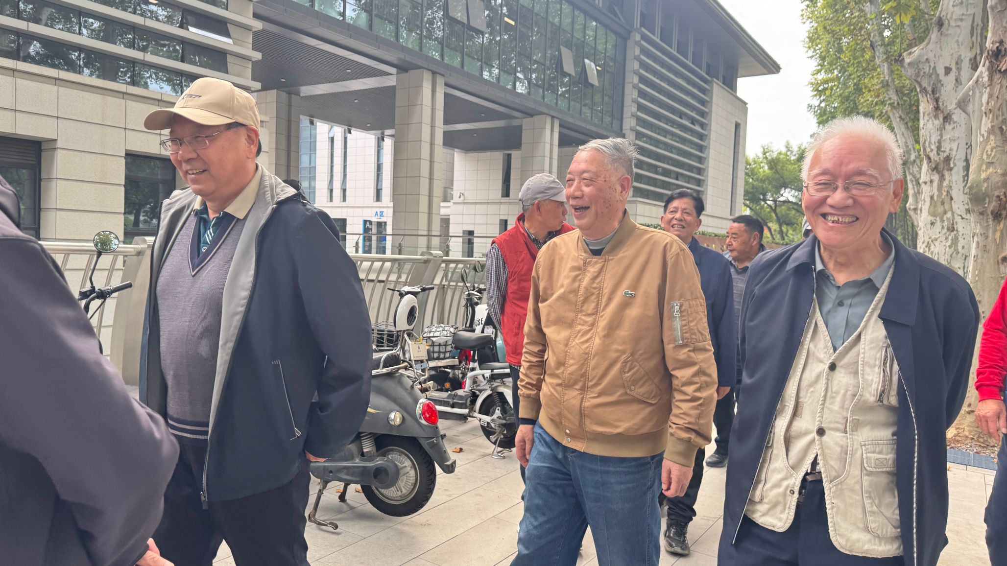 大会结束后,全体与会人员精神抖擞地参加了重阳登高活动。队伍从新水电科技大楼前出发,沿弘毅大道一路向上,途经工学部网球场、五教、六教后折返。秋日校园层林尽染,景色宜人。老同志们步履轻快,或驻足赏景,或并肩畅谈生活趣事,一路欢声笑语,洋溢着健康、乐观、向上的精神风貌。