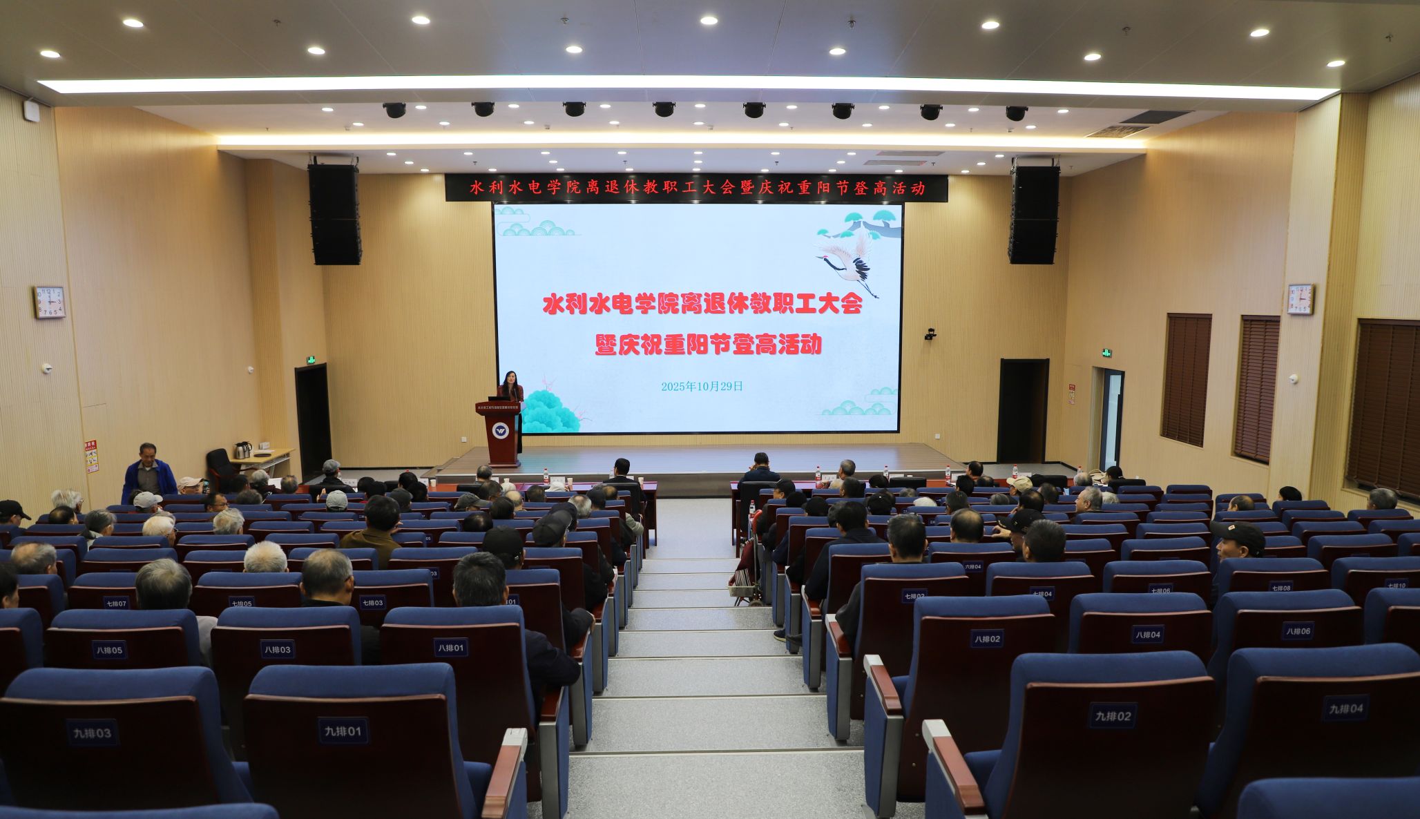 2025年离退休教职工大会暨重阳登高敬老活动在温馨热烈的氛围中举行,学院领导与全体离退休老同志欢聚一堂,共庆佳节,共话发展。