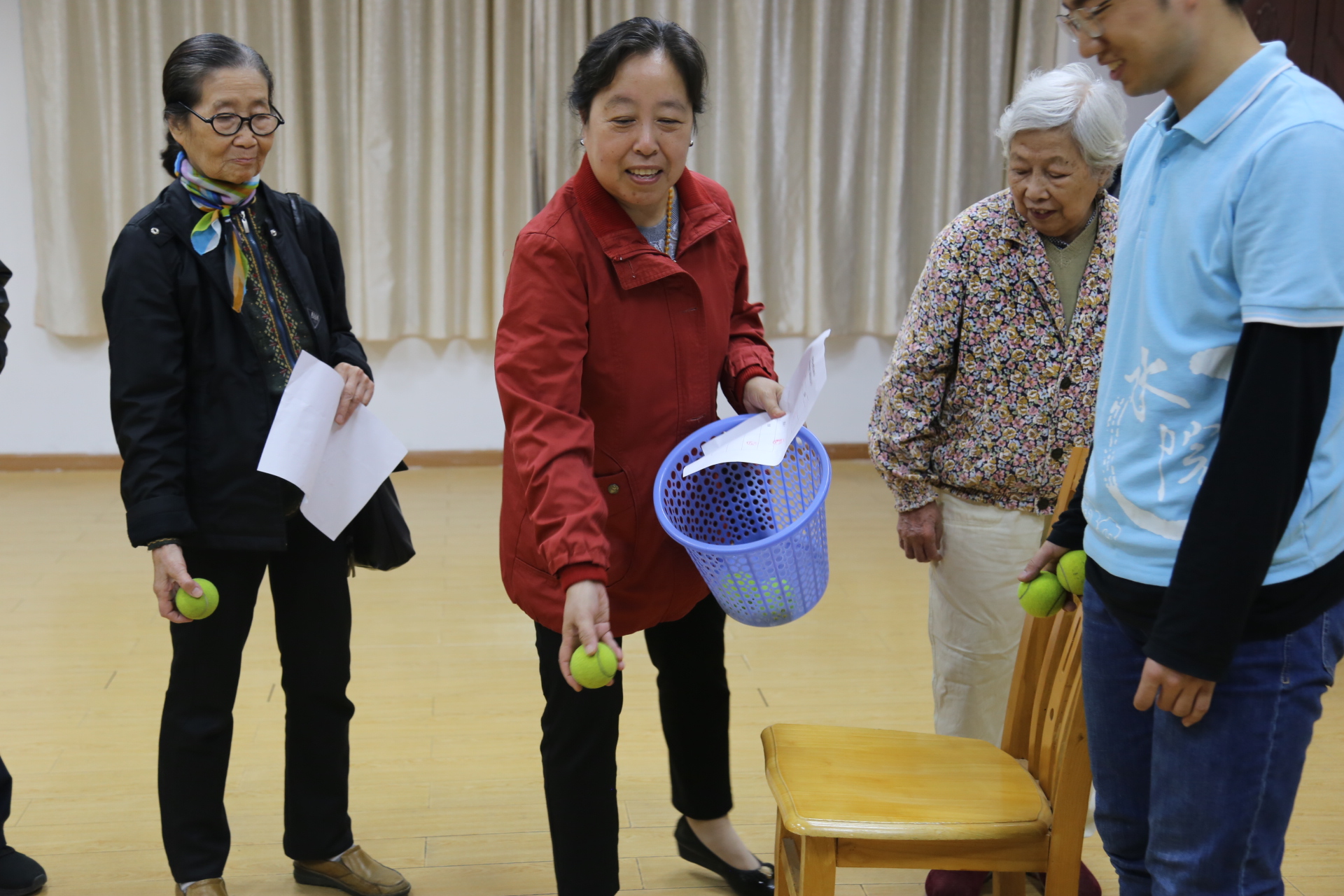 随后,在志愿者耐心细致的引导下,离退休教职工参加了重阳节游园活动。游园会设置了猜谜语、唱红歌、拾贝等8项趣味活动,气氛欢乐、热烈,不时传来欢笑声、喝彩声。离退休职工们既享受了这欢乐、温馨的时光,又切身感受到了学院对他们的重视、关心。
