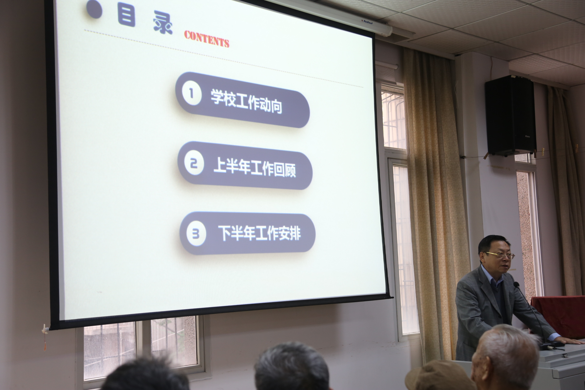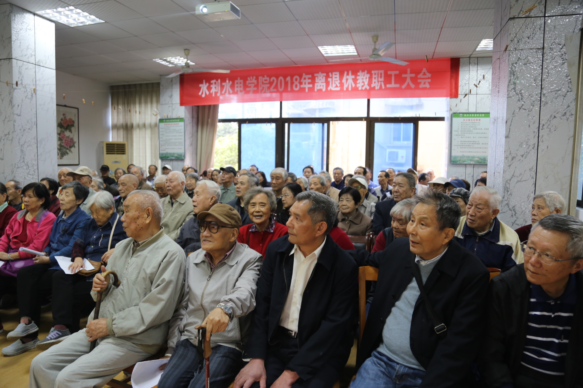院老年协会老教授协会理事会会长李建雄向离退休教职工汇报了2018年老协老教授协会的重点工作及开展情况,并感谢离退休教职工对协会工作的支持。