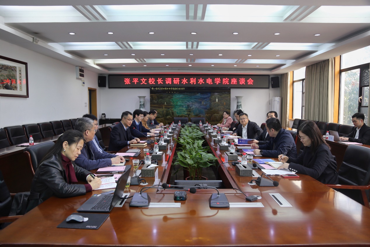 进行工作调研,校长助理徐东兴、相关职能部门负责人、学院和水资源与水电工程科学国家重点实验室领导班子成员参加调研会。