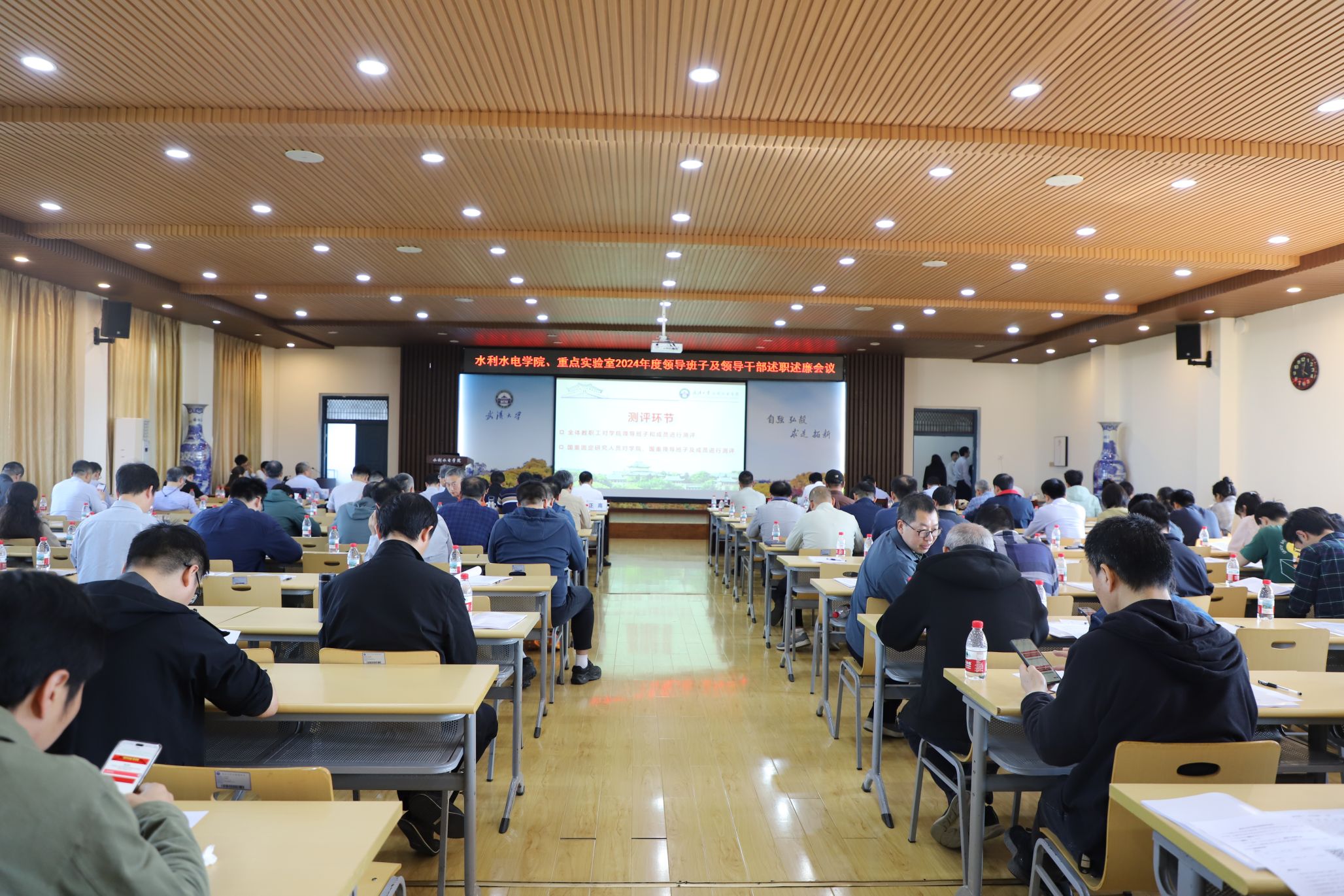 会上,2024年度学院及全国重点实验室领导干部李典庆、刘攀、于敏、左志香、严鹏、伍靖伟、夏军强、杜文琪、任春秀、马刚、胡冉、陈杰、吴运卿以书面述职形式,全面展示了各自的工作成果和未来规划。民主测评环节,与会教职工认真填写测评表,为学院的决策和发展提供重要参考。