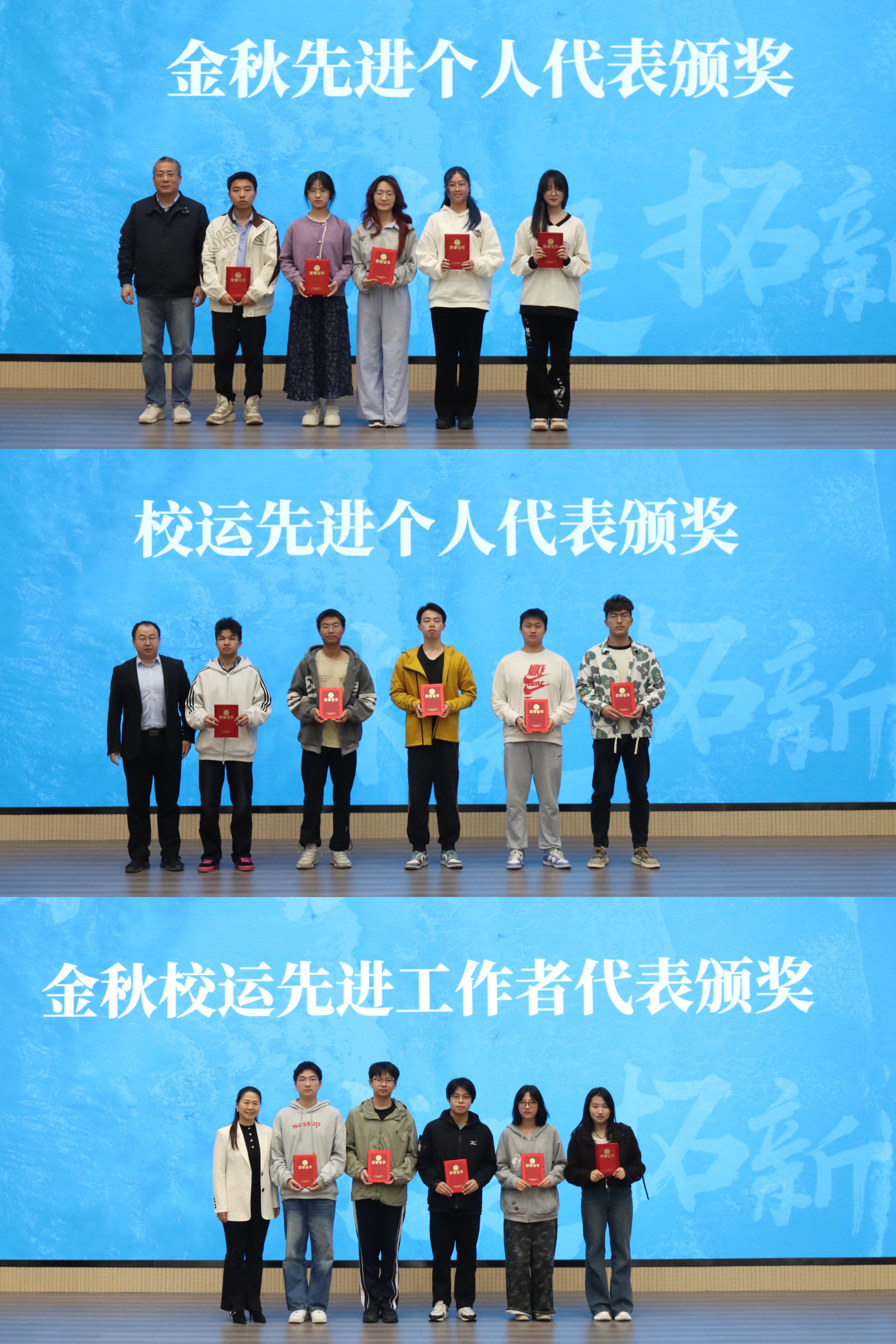 左志香副书记宣读金秋校运表彰文件,对在金秋和校运中作出杰出贡献的同学进行表彰。副院长夏军强、杜文琪、任春秀分别为金秋先进个人代表、校运先进个人代表、金秋校运先进工作者代表颁奖。