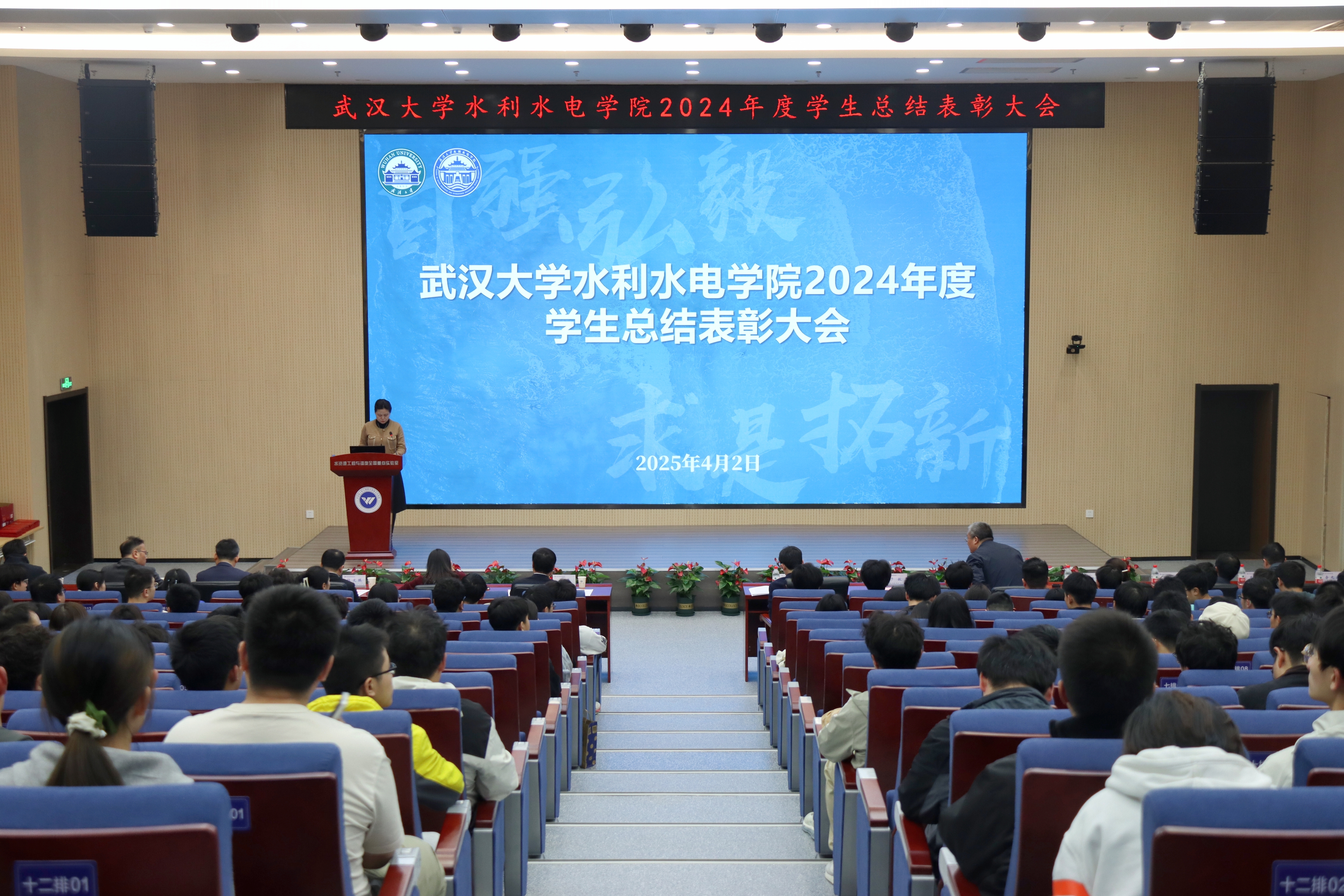 4月2日下午,学院2024年度学生总结表彰大会在水电科技大楼109报告厅隆重举行。学院党委书记全国重点实验室主任李典庆,副院长(主持工作)刘攀,党委副书记于敏、左志香,副院长夏军强、杜文琪、任春秀、马刚,水力发电工程系第一党支部书记胡冉、水文水资源系党支部书记程磊、河流工程系党支部书记李志威、水利工程系党支部书记查元源、智慧水利系副主任王顺,全体辅导员、获奖学生代表和2024级全体同学参加了本次会议。会议由于敏主持。
