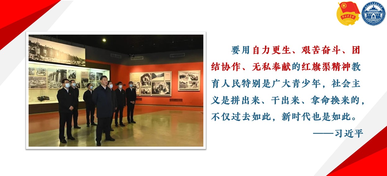 党的二十大后,习近平总书记带领中央政治局常委首站考察陕西延安和河南安阳,大力弘扬延安精神与红旗渠精神。总书记指出:要用自力更生、艰苦奋斗、团结协作、无私奉献的红旗渠精神教育人民特别是广大青少年,社会主义是拼出来、干出来、拿命换来的,不仅过去如此,新时代也是如此。作为水利类院系,2022年学院团委在深入学习贯彻党的二十大精神的同时,也力求探寻新时代红旗渠精神与共青团工作的契合点,有效服务团员青年成长成才。