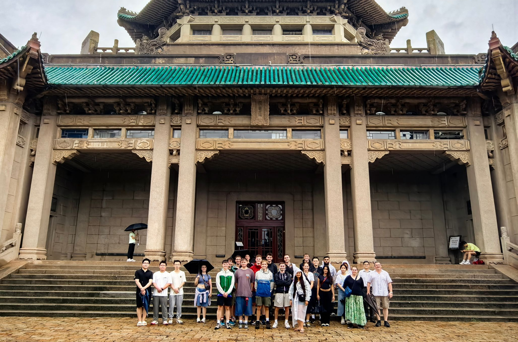 牌坊处,学生志愿者详细讲解了牌坊背面“文、法、理、工、农、医”六大学科门类的办学理念,以及“自强、弘毅、求是、拓新”校训精神的深刻内涵,使英国师生对91黑料