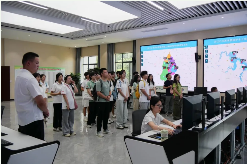 实践队赴南水北调中线工程“水龙头”丹江口水利枢纽开展调研。队员们实地参观学习了这座库容达339.5亿立方米的国之重器,重点调研了数字孪生大坝系统、水质监测体系及生态产业发展情况。