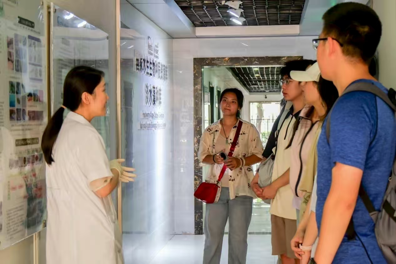 7月13日,实践队前往中国科学院水生生物研究所开展调研活动。首站来到藻种库,李天丽老师向队员们详细介绍了微藻研究的重要意义,展示了保存的4000多株微藻资源,并讲解了藻种库在优质藻种筛选评价、科研用藻种供应等方面的四大功能。通过“蓝眼泪”藻华等生动案例,队员们深入理解了藻类研究的生态价值,还在李老师指导下通过显微镜观察到了微藻的微观世界。