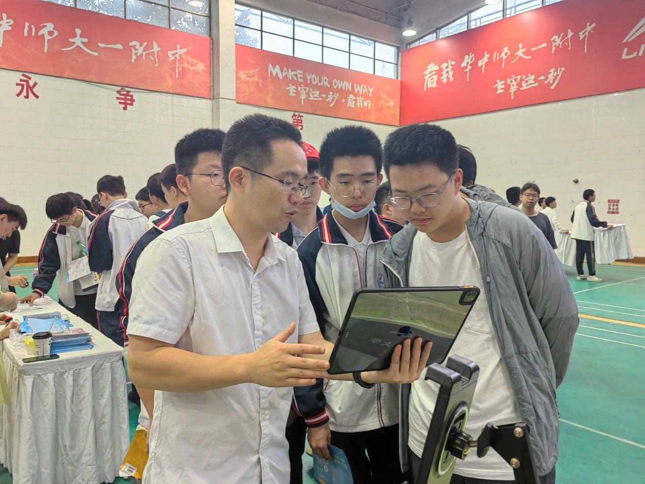 、水资源工程与调度全国重点实验室前往参与华中师大一附中第九届科技节活动,史良胜教授带领的数字水利与人工智能团队代表重点实验室将沉淀了10年的科研转化产品“珈禾”系统以科普、交互的方式将水利领域最先进的科技带到了科技周的展台上,为高中生送去一场高端、酷炫的科技互动展示。