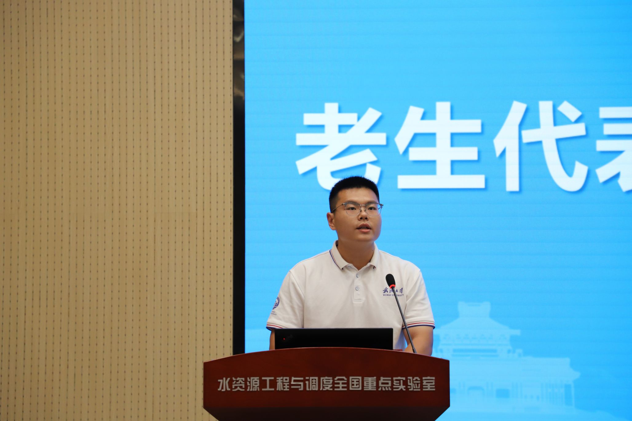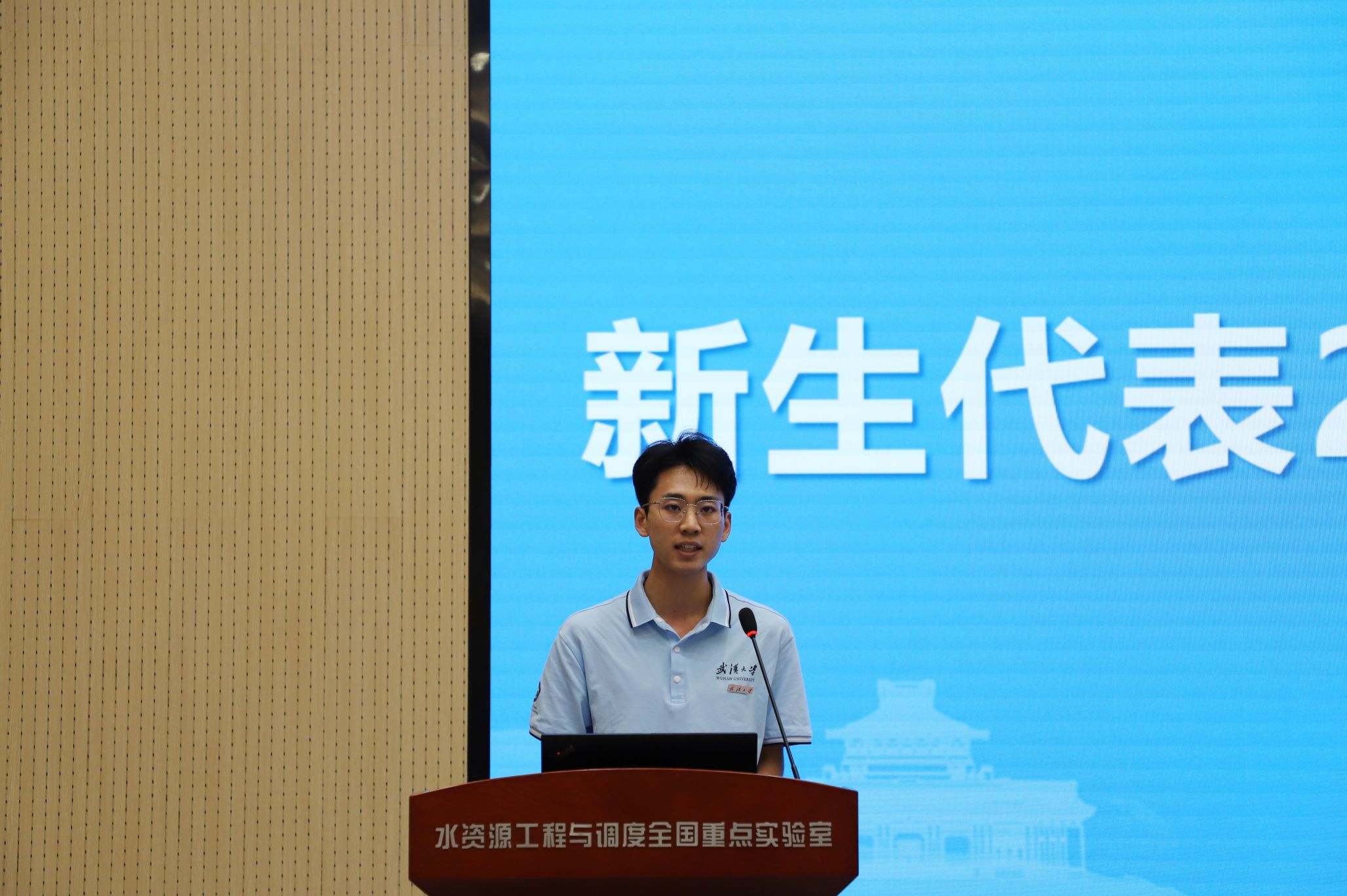 2025级直博生张晋豪代表新生发言。他回忆了本科四年在珞珈山逐梦的点滴,感谢学院用“上善若水”的胸怀托举成长。站在新的人生起点上,他表示将脚踏实地,培养国际视野,做好研究,号召同学们立足学院平台,在多学科交叉的激流中把“较真”变习惯,让青春浪花汇入国家水利高质量发展巨浪。