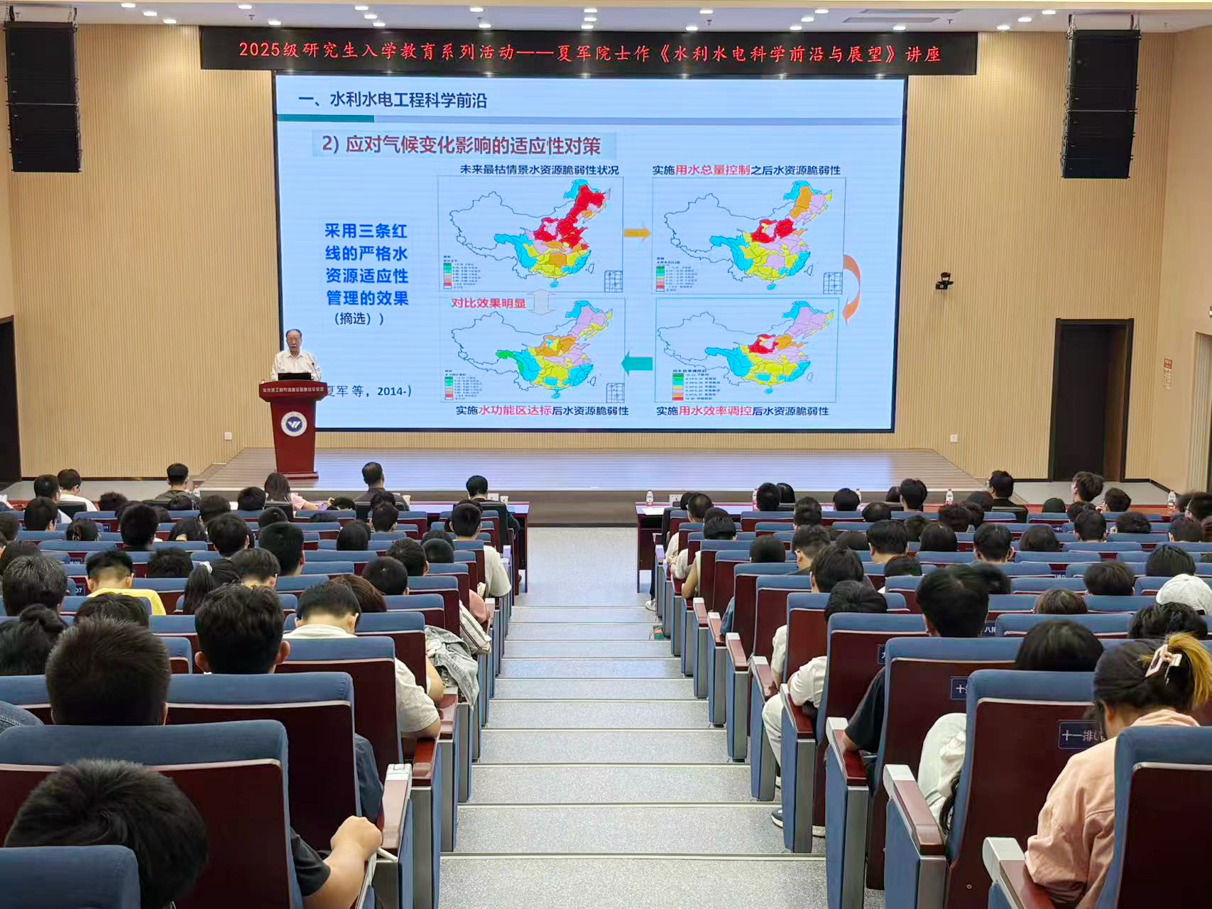 2025级全体研究生新生做《水利水电科学前沿与展望》专题讲座。学院院长刘攀主持讲座,党委副书记左志香、全体研究生辅导员和2025级研究生新生参加。