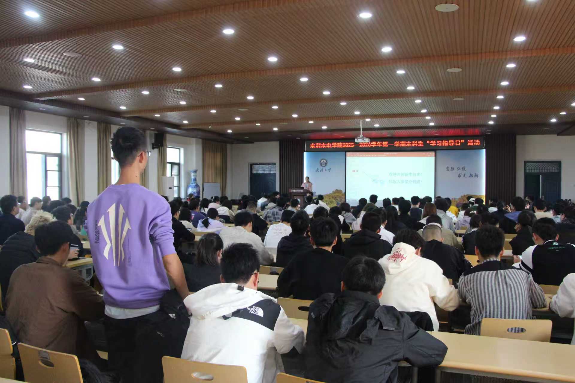 为营造良好的学习氛围,引导学生积极进取、努力学习,培养学生健康的学习习惯和科学的学习方法,全面提升学生培养质量,学院于10月28日下午开展了2025级本科生“学习指导日”活动。辅导员慈晓虎,教学办公室高晶、黄晓羽,优秀学生代表徐人杰、黄思睿及全体2025级本科新生参加了会议。会议由慈晓虎主持。