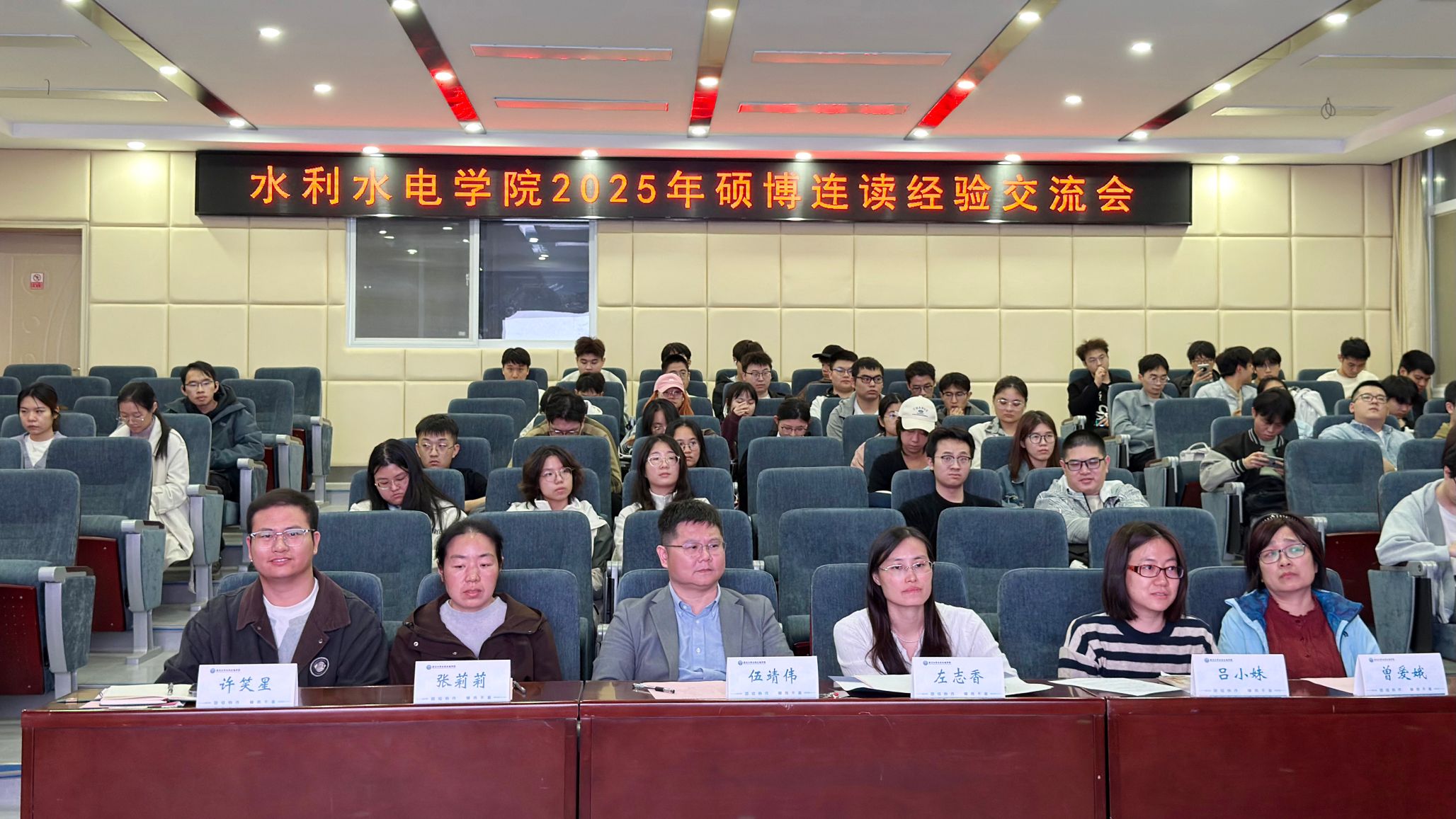 在经验分享环节,2023级水工结构工程专业博士生陈治平与2024级水文学及水资源专业博士生吴玥结合自身经历,分享了硕博连读的心得体会。陈治平建议同学们明确读博目标,合理规划时间,妥善平衡科研与生活,强调身心健康是持续开展科研工作的基础。吴玥则从读博动机、抉择过程、科研规划与心态调整等角度分享感悟。她指出:“读博本身不是目的,而是实现职业与个人目标的途径。想清楚这条路将通向何方,远比盲目启程更为重要。”两位博士的分享情真意切、内容详实,令在场同学受益匪浅。