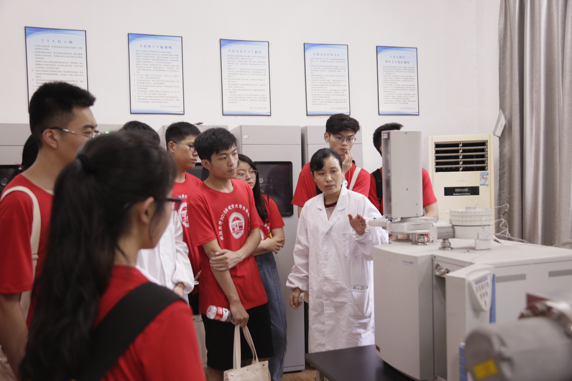 图四 潘国艳老师为营员介绍水文水资源实验室同位素仪