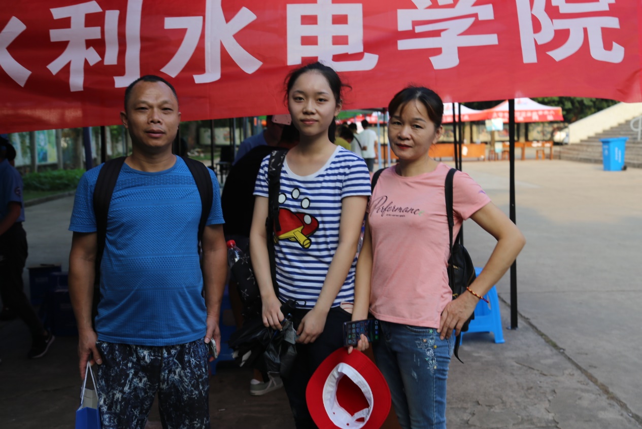 千里送女,情意浓,珞珈山下,是一家。来自广西壮族自治区的2018级本科新生冯缨淇与父母合影