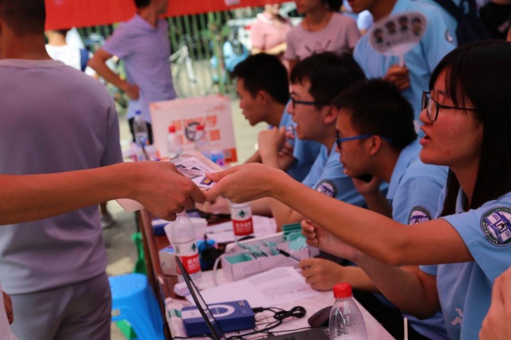 萌新欢迎萌新,来自广东的2018级本科新生林显浩积极参与到迎新工作中