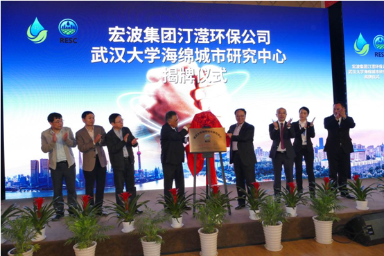 海绵城市研究中心主任夏军和上海宏波集团董事长、我院农田水利专业73级校友顾德鱼共同为中心进行揭牌。