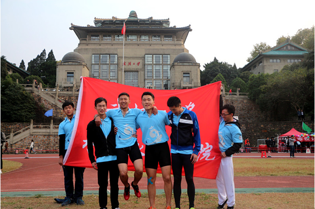 能在武大竞技体育的最高赛事中获得如此殊荣,离不开我院学子积极昂扬的精神风貌和团结拼搏的奋斗努力。开幕式上,作为五个成功竞标的院系,我院学子身着浅灰色套装迈着铿锵有力的步伐行走在校运跑道上,引人注目,在随后的 “蓝伞show”中更是迎来阵阵喝彩。运动会中,我院学子拼搏顽强的表现催人热泪:田径场上,有连续11年参加校运的“老将”赵强,有高年级包揽男子1500米、5000米冠军的何昱晓,有将女子800米、1500米、3000米第一收入囊中的张才金和江青蓉,还有在女子短跑200米中拔得头筹的新生代表伍翠凤;拔河场上运动员咬紧牙关的卯足干劲,呐喊助威响彻全场。闭幕式上,“武大水利,顶天立地;水院雄风,谁与争锋”的口号集合着欢呼、呐喊、敲鼓、摇旗,久久回荡。