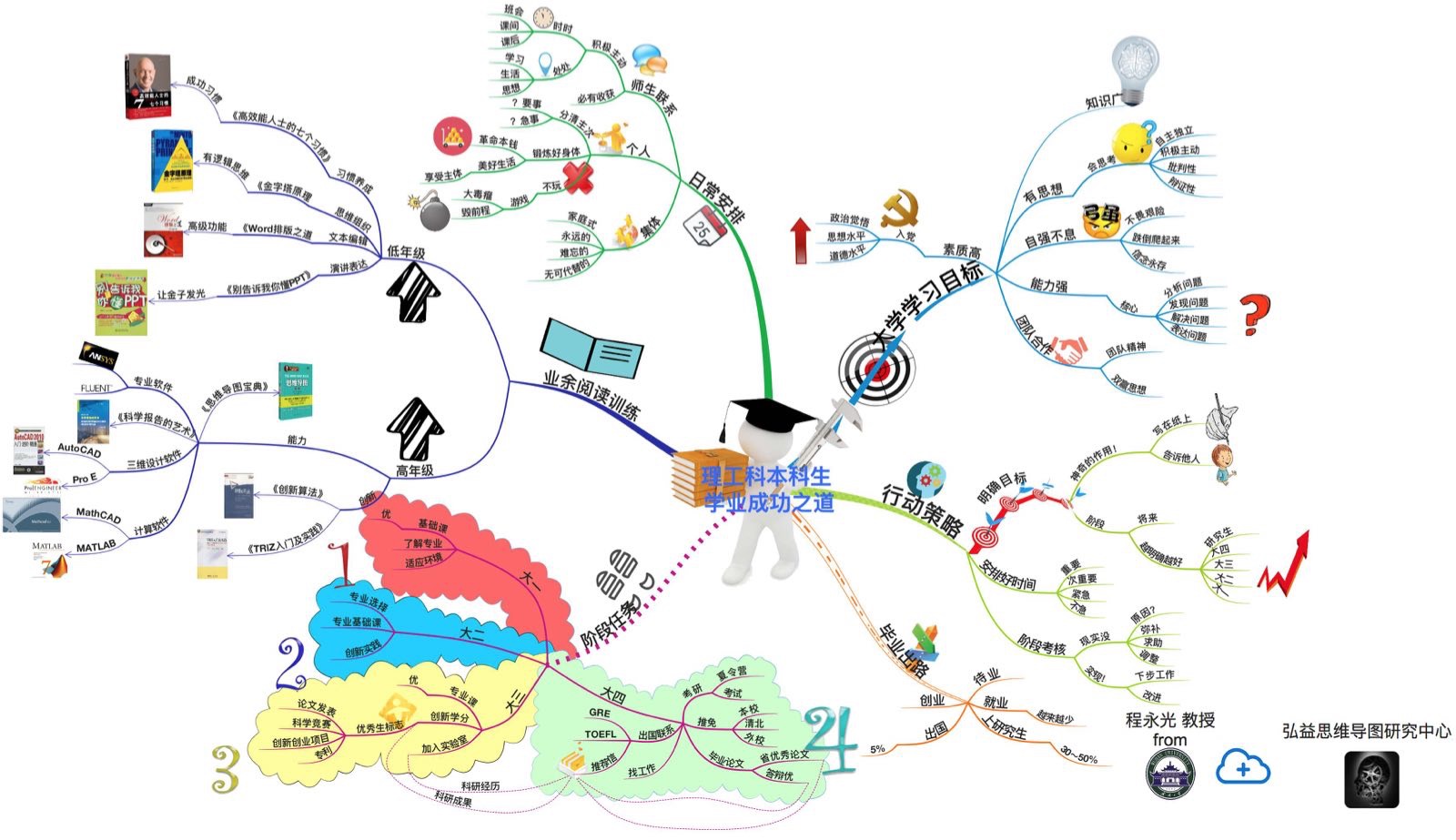 (程永光老师亲手绘制的“理工科大学生学业成功”之道思维导图)