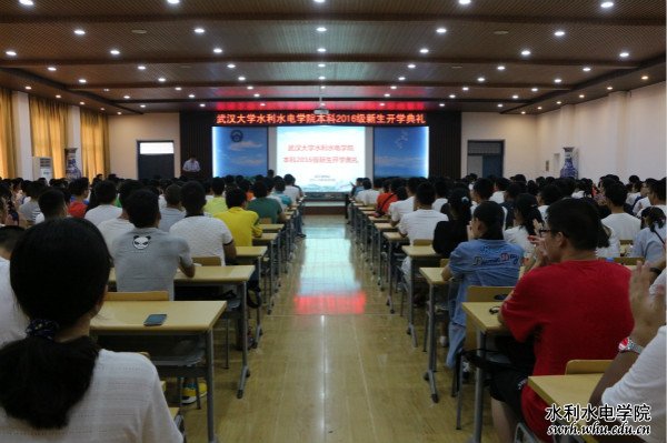 9月8日上午,学院本科2016级新生开学典礼在8328报告厅顺利举行。学院党委书记程连珍,院长黄介生,国家重点实验室主任、副院长卢文波,党委副书记周玉霞、张栋梁,副院长梅亚东、陈立、吴运卿、李典庆,各系教学主任、院教学秘书、年级辅导员、代理班主任以及2016级全体新生参加开学典礼。