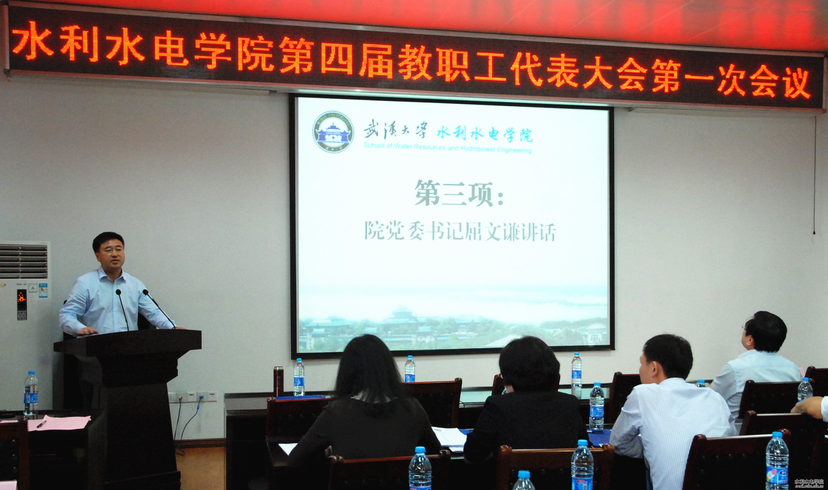 在开幕式上,院长黄介生作了题为“振奋精神 扎实工作 向世界一流水利学科迈进”的工作报告。报告回顾和总结了学院近五年来取得的主要成绩,同时分析了学院存在的问题与面临的形势。报告指出,2015年,是全面深化改革和谋划学院发展战略的关键之年,学院将紧跟学校“内涵发展、特色发展、创新发展、开放发展、共建发展、和谐发展”的六大战略,着重从师资队伍、基础条件、学院管理、人才培养、科学研究、国际交流、文化建设方面开展工作,优化发展环境,不断提升学院核心竞争力,增强社会影响力。副院长吴运卿作《财务工作报告》,介绍2014年学院财务收支情况、绩效分配情况和2015年院级财力收支预算情况。院工会主席肖宜作《工会工作报告》,介绍了2014年学院工会工作和2015年的工作设想。
