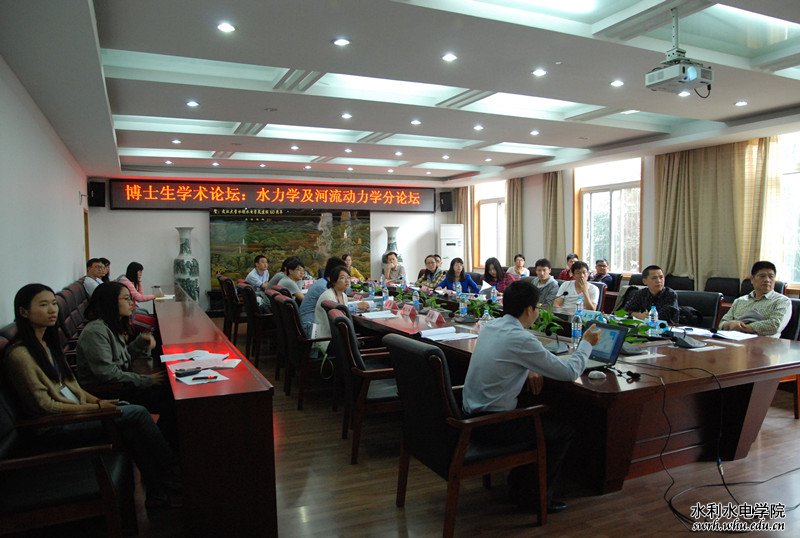 教授槐文信,杨建东,陈森林,史良胜等出席了论坛的开幕式。夏义堃副院长、卢文波主任分别致词,许崇育教授作了论坛主题报告,从分析历史和现代机遇中,提出水利事业大有作为,并指导博士生如何提高科研能力,如何提高科技论坛的写作能力。