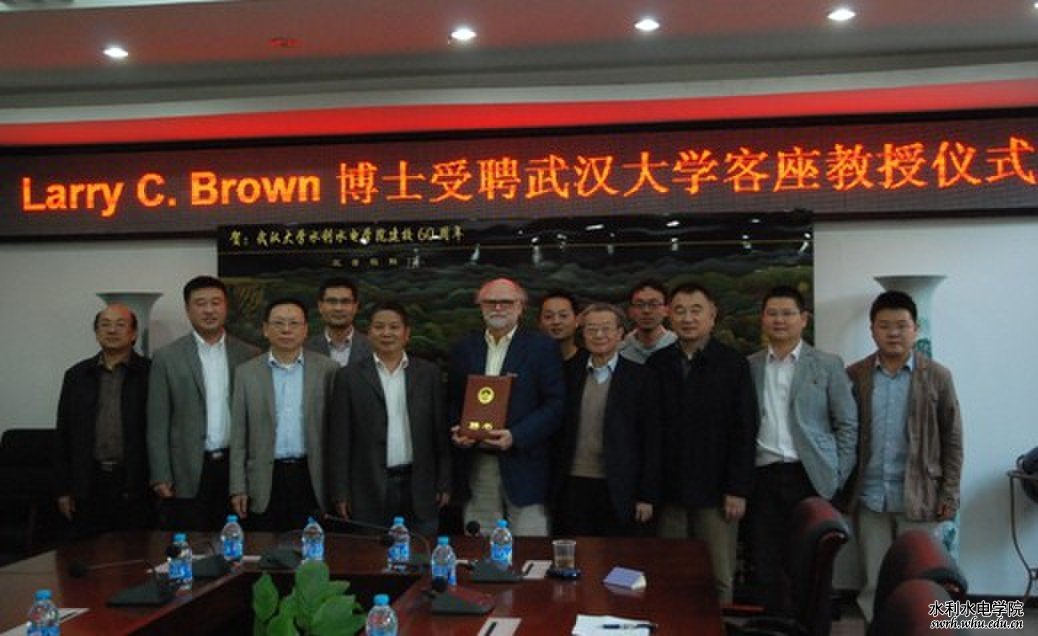 10月25日下午,我院举行Larry C. Brown博士受聘客座教授仪式。仪式由黄介生院长主持。副校长谈广鸣,中国工程院院士茆智,学院党委书记屈文谦,水利工程系教授杨金忠、邵东国、董斌、伍靖伟及学生代表等参加了仪式。