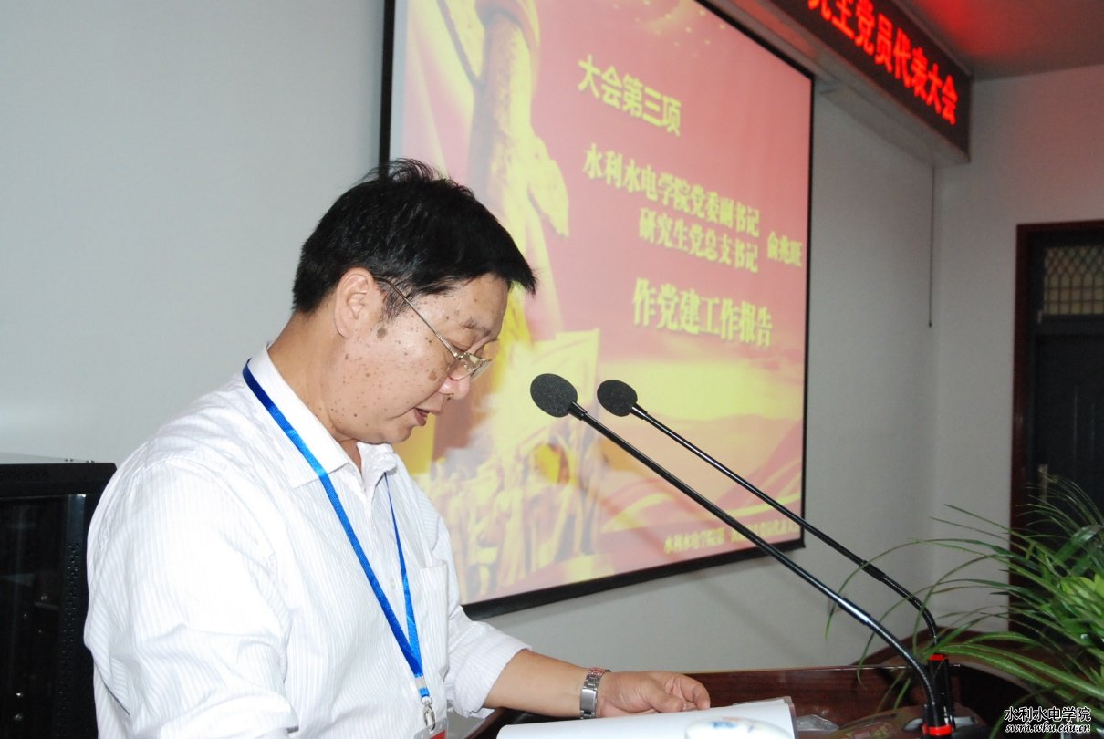 大会听取和审议了院党委副书记、研究生党总支书记俞兆旺同志代表第八届研究生党总支作的题为《筑坚强堡垒、树先锋形象、促科学发展、 团结带领全院研究生党员为构建和谐学院贡献力量》的党建工作报告。全面总结了过去一年学院研究生党建工作的成绩和经验,并提出了对今后工作的思考和建议。