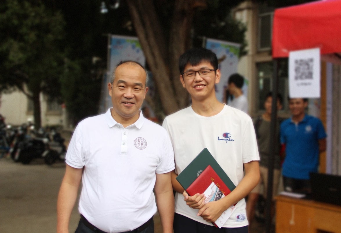 我院19岁博士生范鲁晔,是我校2019级博士生中年龄最小的一位。在完成个人报到手续后,范鲁晔同学主动加入到学院迎新工作队伍中。在跟窦校长合影留念后,他开心地说起了自己读博期间的二个愿望:一是成为一名光荣的共产党员;二是在毕业时,还要与校长合影,让校长见证自己的成长。