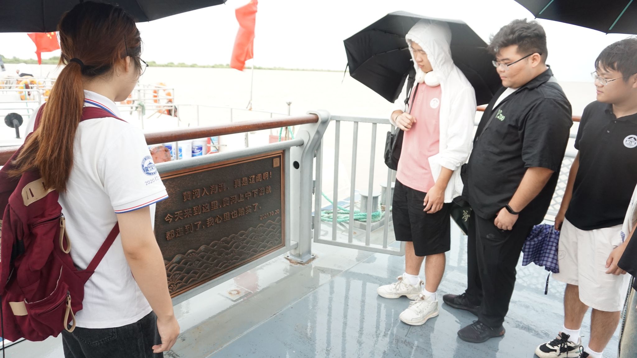 黄河,是中华民族的母亲河,孕育了华夏儿女的千年文明,而黄河三角洲无疑是黄河与大海最震撼的交汇之处。2021年10月20日下午,习近平总书记来到黄河入海口,凭栏远眺,听取黄河流路变迁、水沙变化和黄河三角洲生物多样性保护等情况介绍。2023年8月5日,实践队队员跟随着习近平总书记的足迹,来到了山东东营黄河入海口。虽然大雨磅礴,但也丝毫不能阻挡实践队队员前行的步伐,黄河河口管理局的领导们带领着大家参观了著名的黄河三角洲生态检测中心,队员们亲眼目睹了黄河入海口的壮丽景色,深切感受到了黄河的磅礴之势以及大自然的魅力,也深刻了解到生态保护的重要性。