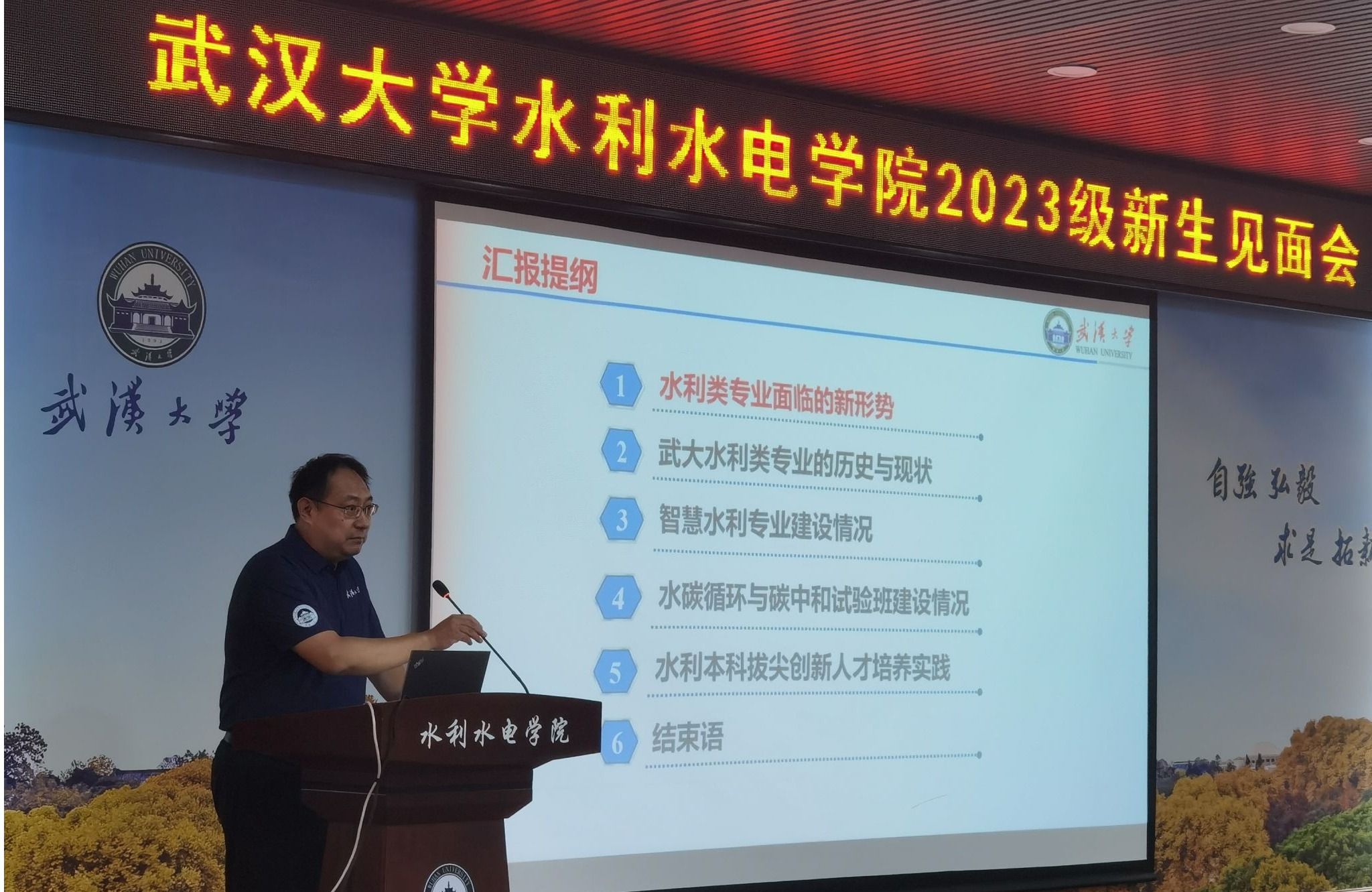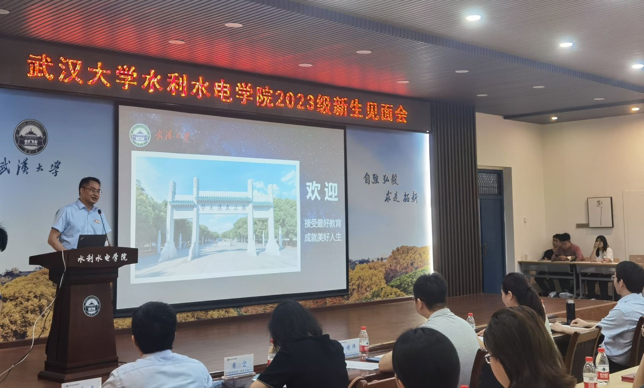 8月26日上午9点,我院2023级本科新生见面会在学院8328报告厅隆重举行,院党委书记李典庆,院长熊立华,党委副书记于敏,副院长严鹏、伍靖伟,学院各系主任,辅导员和全体2023级本科生参加会议,会议由学院党委副书记于敏主持。