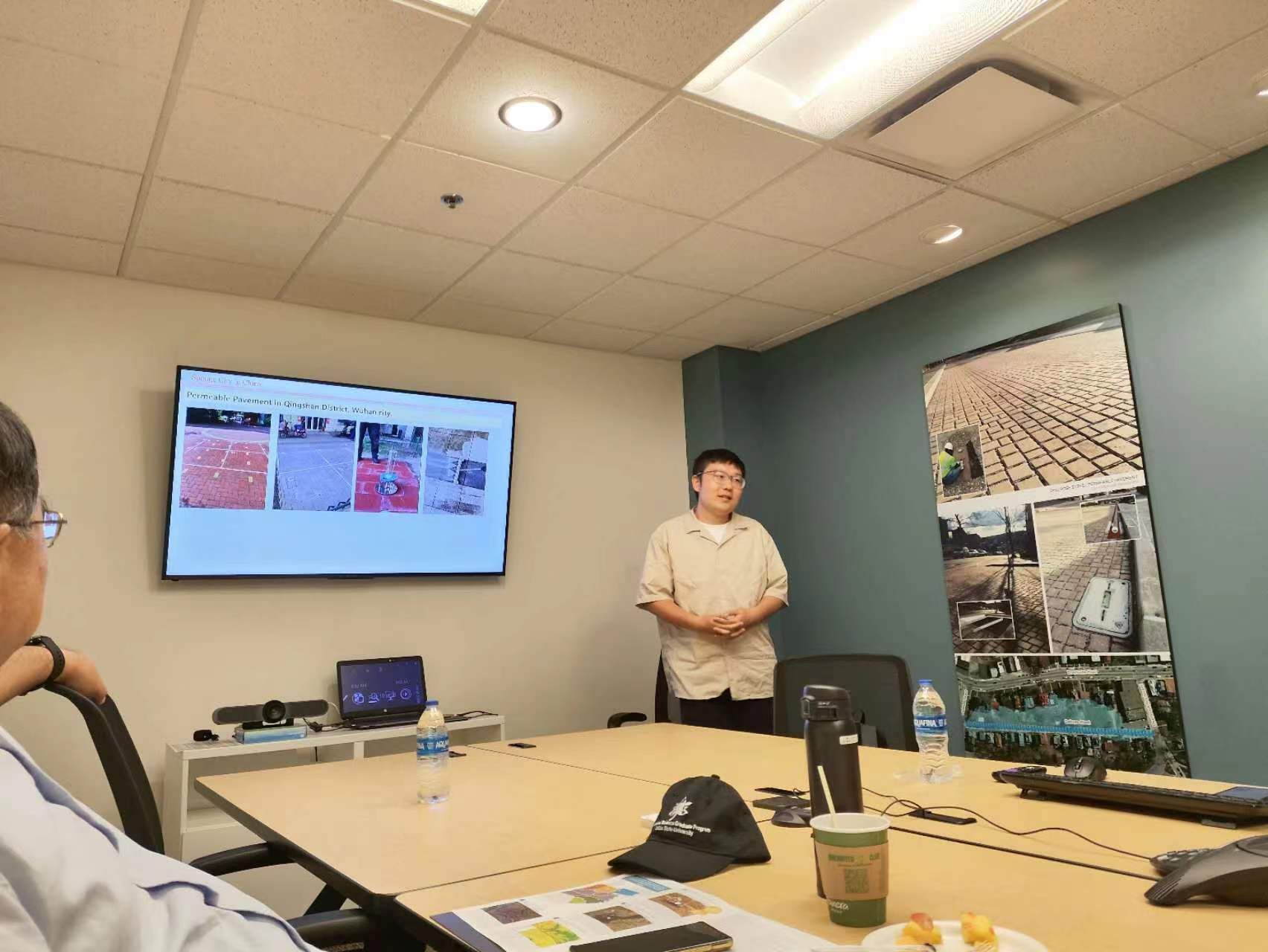 -俄亥俄州立大学合作团队开展学术交流,Ryan Winston副教授及团队Joey Smith 博士研究生等对其所在哥伦布市的“蓝图哥伦布”计划进行深入介绍,包括计划理念、实施方法、具体设计等,展示了“蓝图哥伦布”计划的城市雨洪管理绿色方案,双方就绿色基础设施的具体设计、区域LID系统分析等学科前沿问题进行讨论,在激烈的思维碰撞中寻求进一步科研合作的方向。