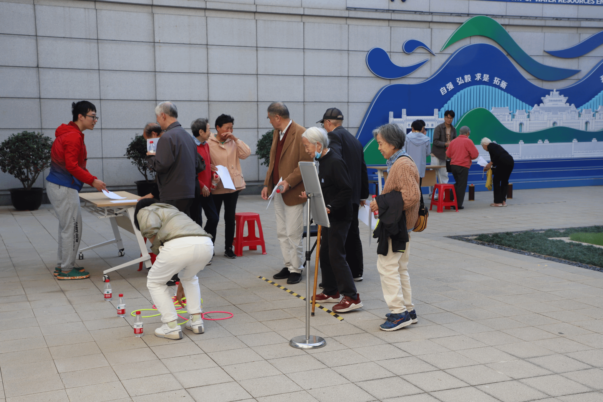 大会结束后,在学院青协和研究生志愿者同学们帮助和指引下,老同志们开展了重阳节游园活动。游园会设置了猜谜语、贴鼻子、五子棋、投壶等9项趣味活动。现场气氛热烈、暖意浓浓。看到老同志们有说有笑的参加活动,刘金才表示,这样的活动非常好,很适合老同志们,既加深了学院与老同志们的连接,也加强了老同志们之间的交流与联系,希望学院把这项传统活动保持下去。