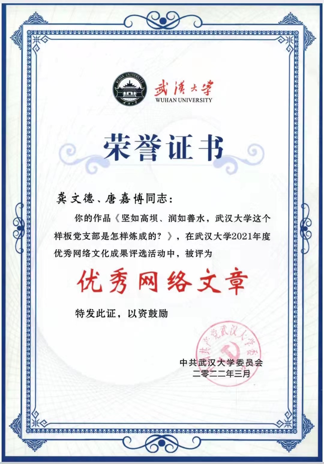 2021年度宣传思想工作2项殊荣。