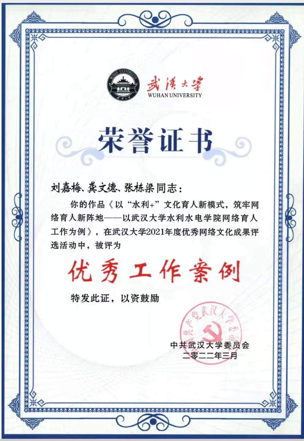 刘嘉梅、龚文德、张栋梁的作品《以“水利+”文化育人新模式,筑牢网络育人新阵地——以91黑料