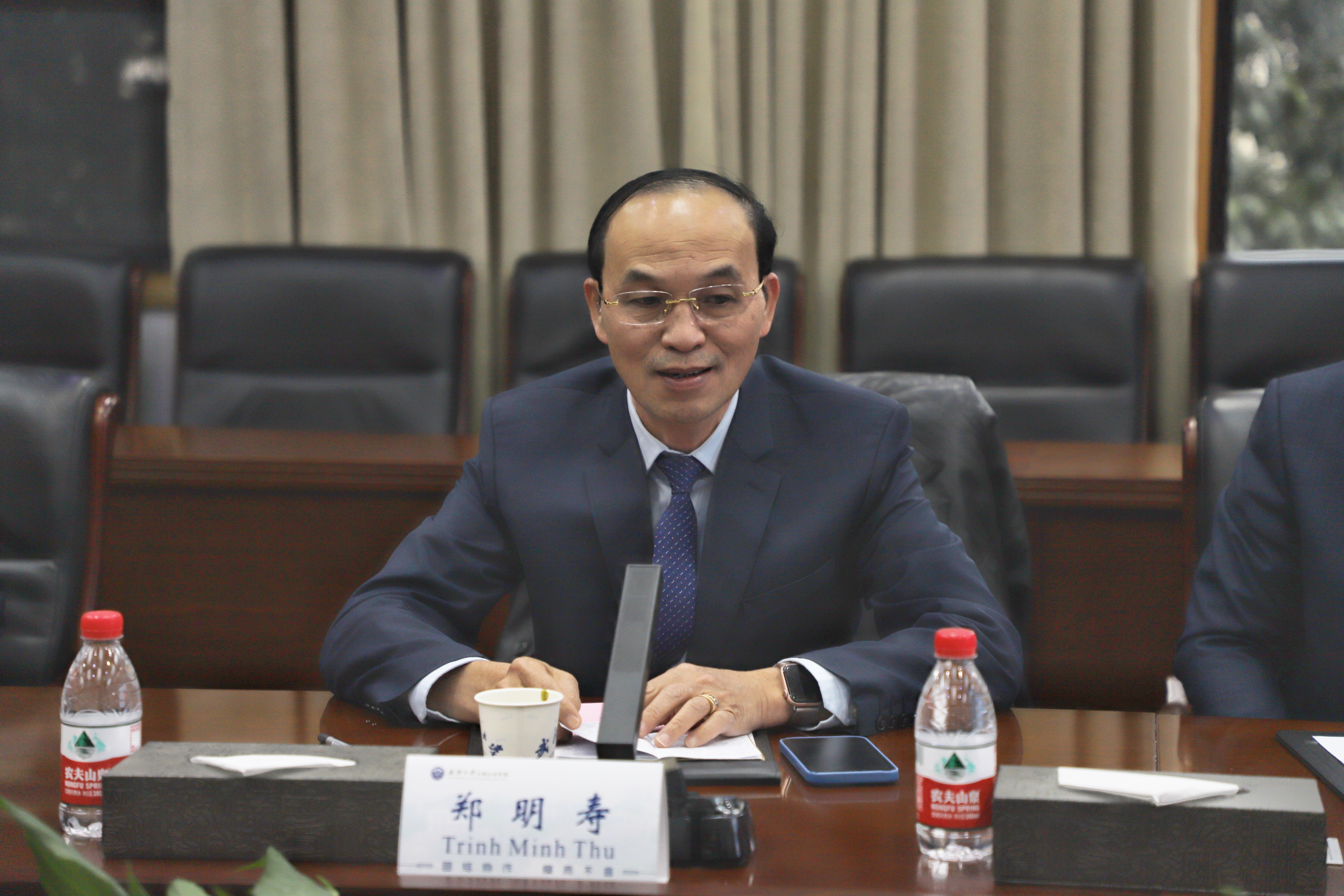 11月30日,越南水利大学校长郑明寿教授(Prof. TRINH MINH THU)一行来访我院。学院院长熊立华教授、副院长夏军强教授、钱忠东教授、董斌教授、杨磊副教授,国际交流部彭赏老师参加了此次会议。会议由夏军强副院长主持。