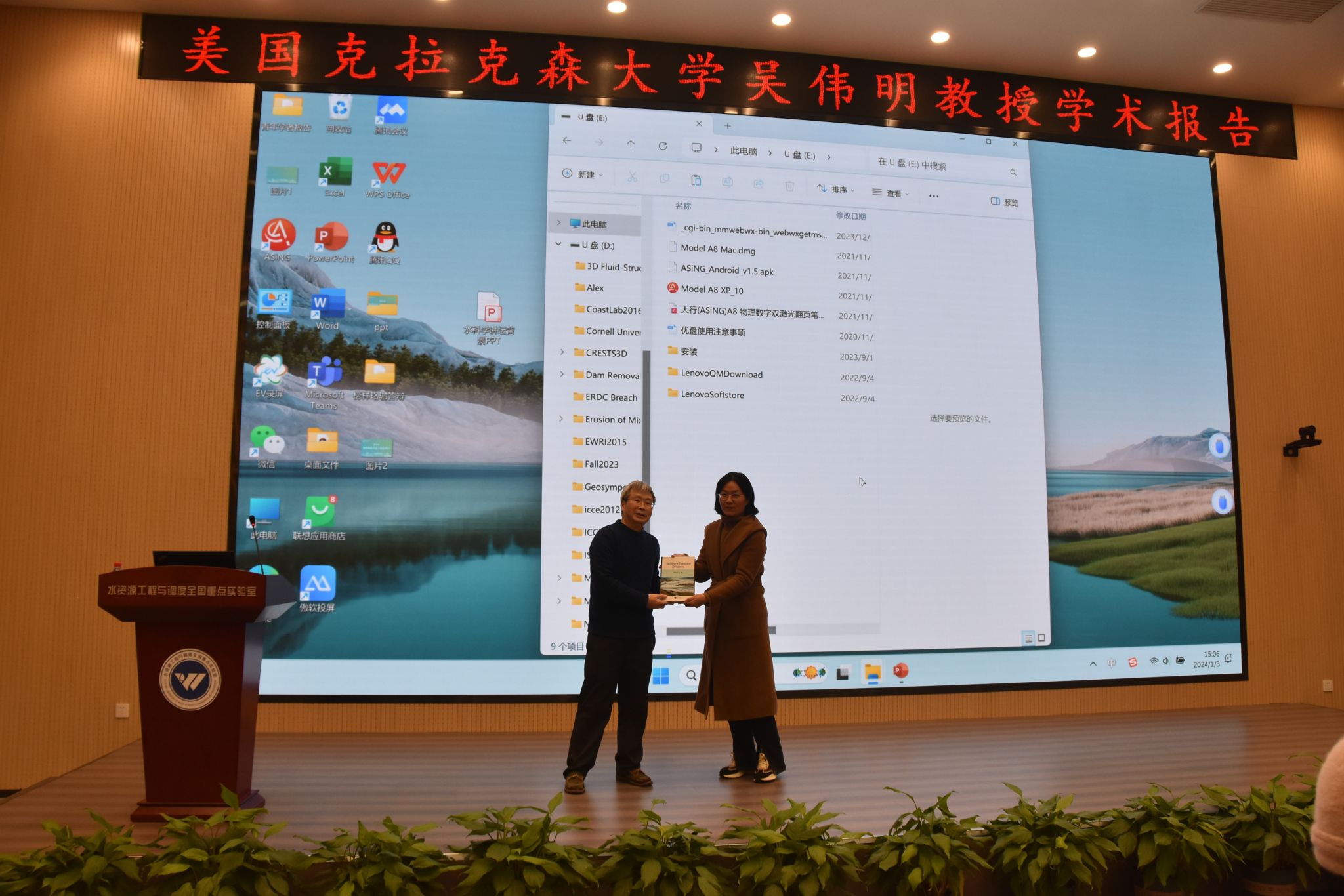 学术报告之前,吴伟明教授深情回顾了1982-1991年在水院求学期间,非常感念在谢鉴衡院士悉心指导下,开展河流泥沙数学模型的难忘时光。他简要介绍了他的最新专著章节内容与撰写初衷,恰逢今天也是谢鉴衡院士九十九诞辰,以此书献给恩师,并希望以此学术报告作为对谢院士的深切怀念。