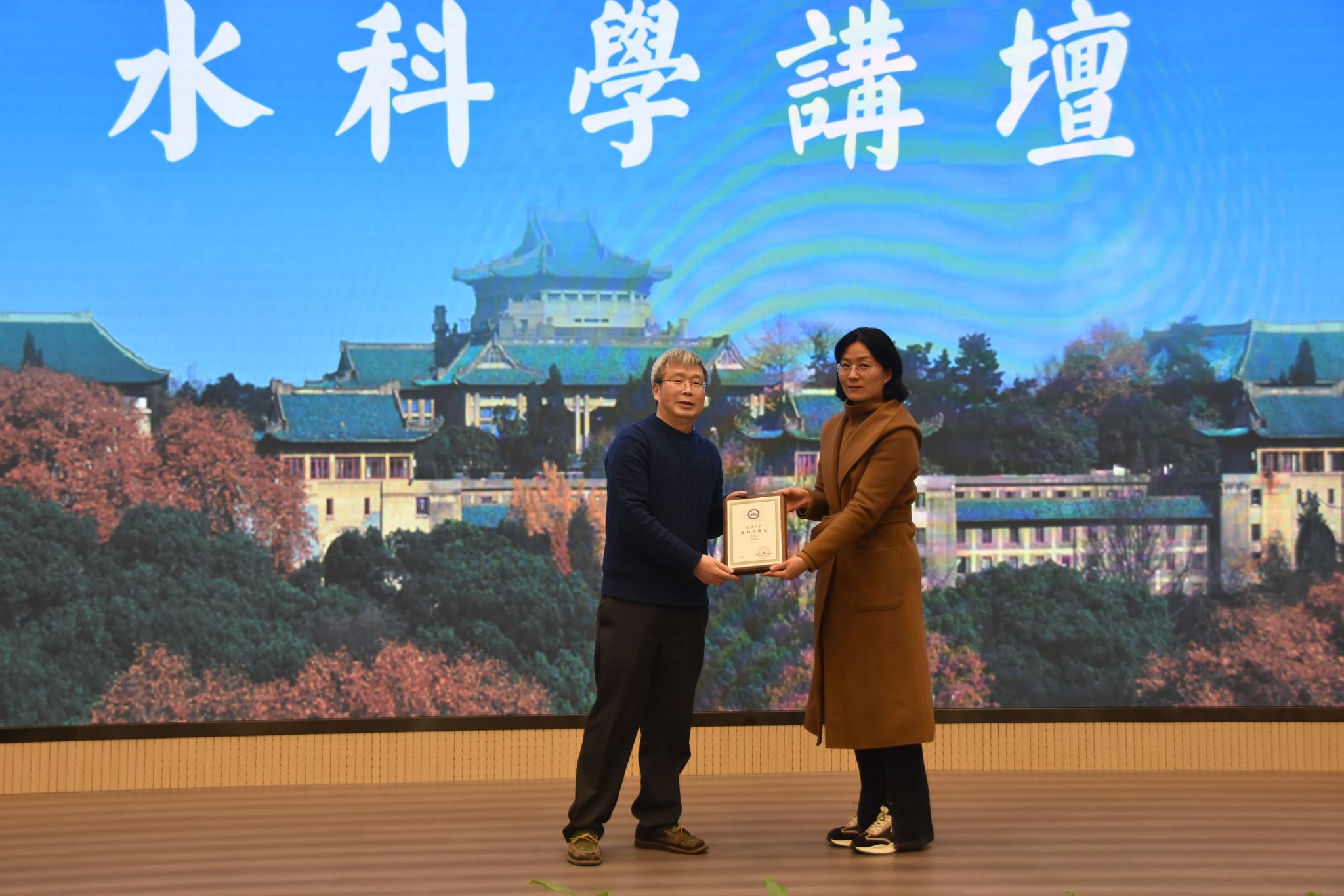 △曾玉红教授代表国重实验室向吴伟明教授赠送“水科学讲坛”纪念牌