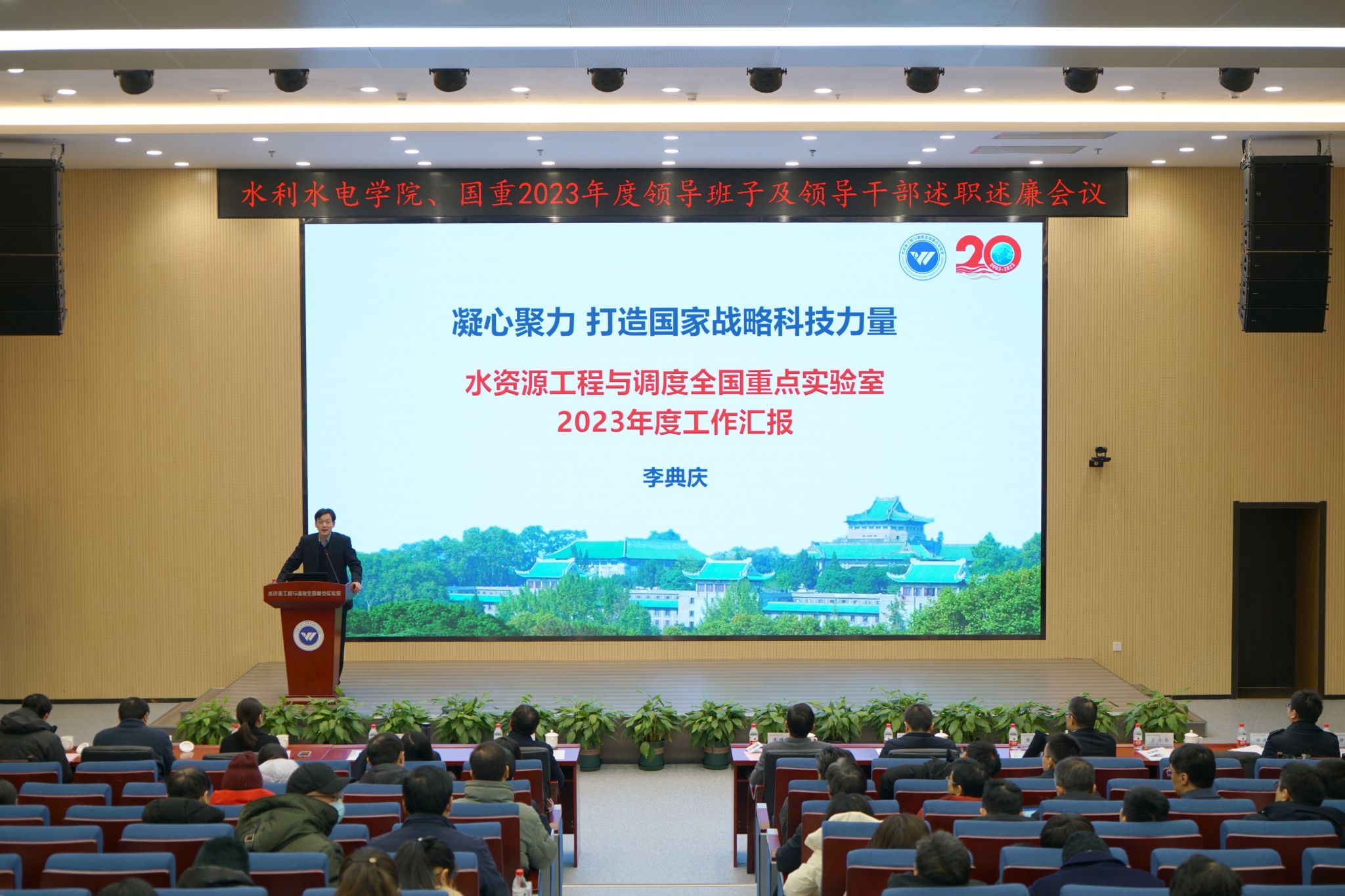 党校专职副校长王临平、发展规划与学科建设办公室副主任居森林、科学技术发展研究院平台条件与成果管理处副处长李四维出席会议。学院党委书记、全国重点实验室主任李典庆,院长熊立华等班子成员及全体在校教职工参会。会议由党委副书记于敏主持。