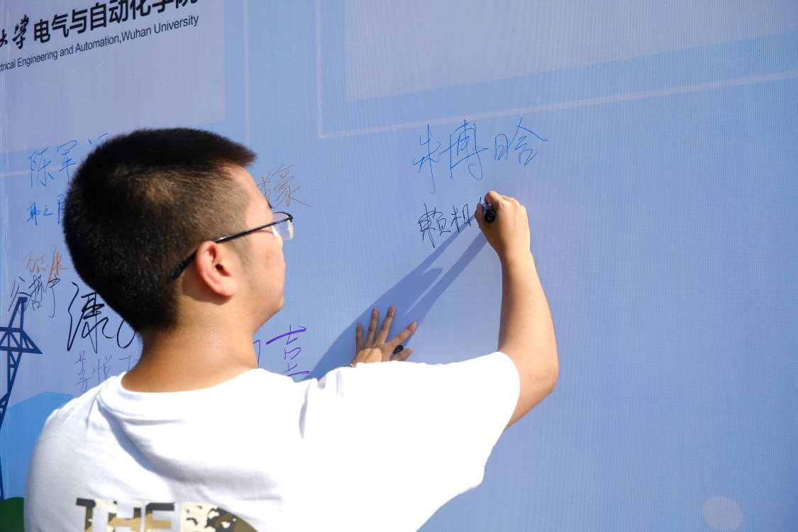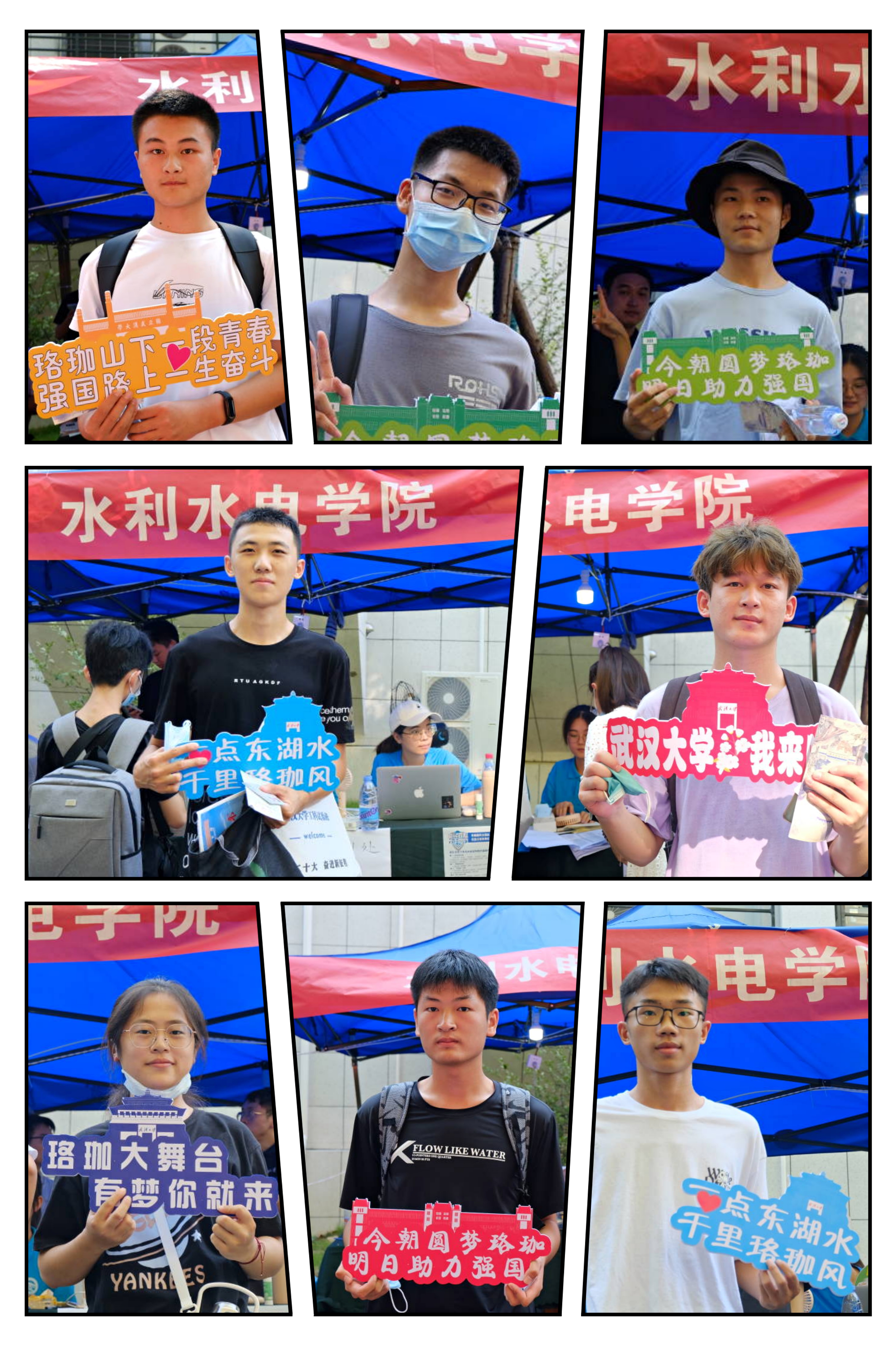 报到摊位为背景,手持我院为新生准备的标语牌,面对镜头留下了许多张极具纪念意义的相片。接下来你们的武大之旅就要开始啦!