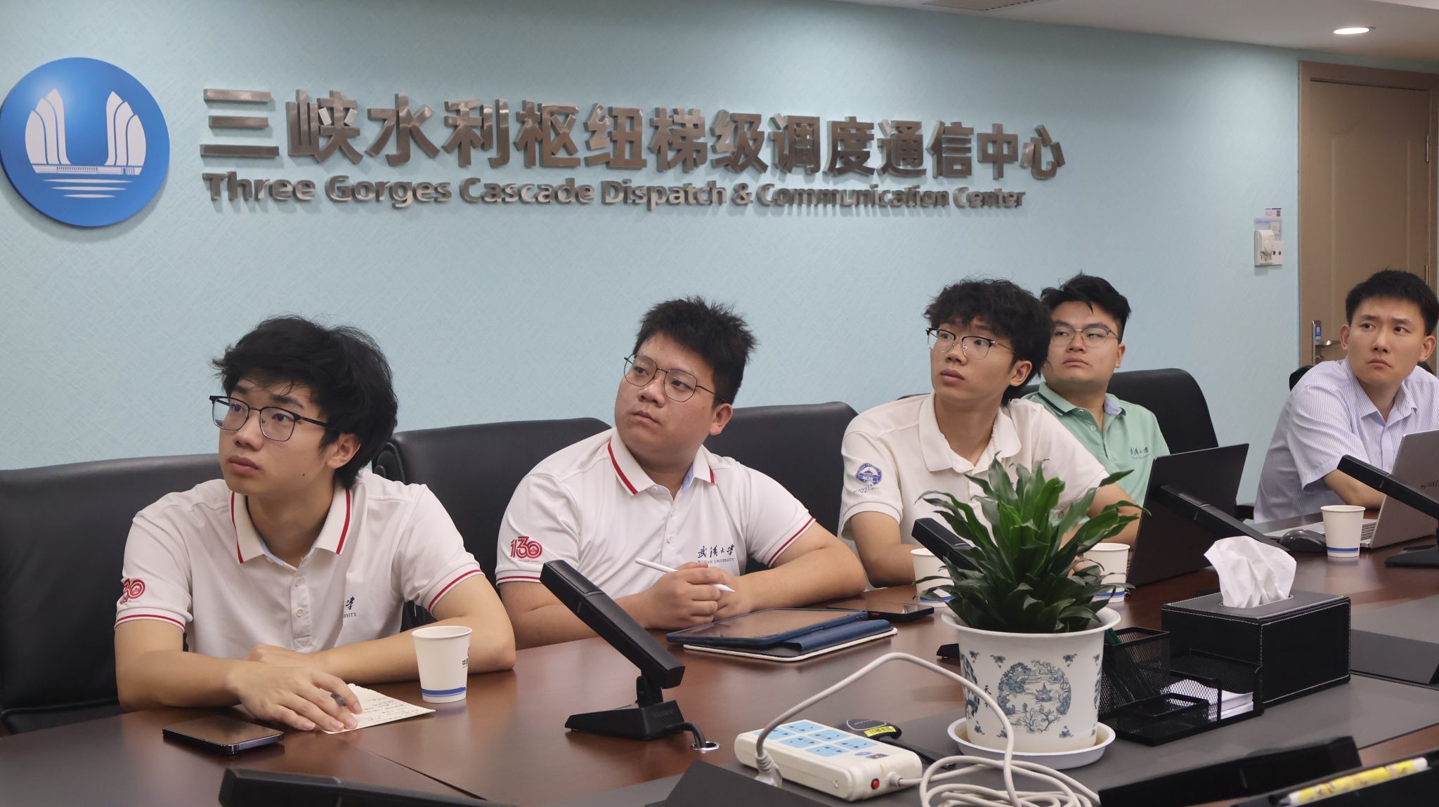 在与三峡水利枢纽梯级调度通信中心的座谈会上,中心技术骨干向同学们介绍了在防洪减灾工作中独立自主开发的水情遥测系统,被誉为防汛工作的“预警机”、水库调度的“参谋部”、水雨情的“千里眼”,是开展好枢纽防汛、电力生产、工程建设等各项工作的重要保障。“三峡梯调中心如何应对连续暴雨天气影响?”专家介绍道,“需进一步加强系统性联合防洪调度,既要解决梯级水库什么时候拦、哪个水库先拦、每个水库拦多少的问题,还要考虑枢纽大坝安全、航运、发电等多方面因素。每一次调度背后,不仅是审时度势、精密测算,更是多方考虑的平衡协调。”在提问与解答过程中,队员们进一步明晰了三峡梯调中心防洪预警发展方向与生态治理目标,对推动长江模拟器赋能流域水灾害治理充满信心。